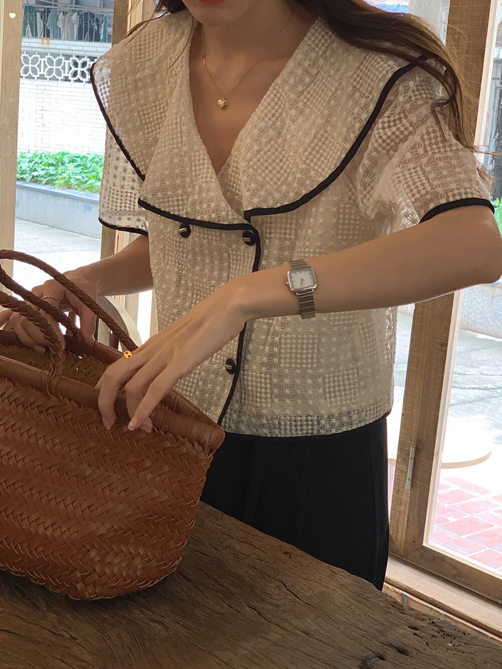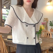 サマーダブルブレストシャツ トップス エレガント 夏物 7/20 mi4695602559546