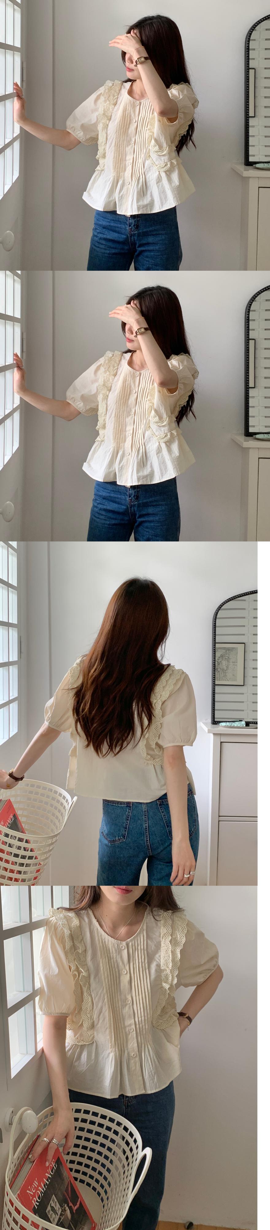 サマーラウンドネックプリーツスリーブシャツ トップス レディース 夏物 Oネック 7/20 mi4694989081983