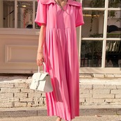 サマーネイビーカラールーズカジュアルプリーツドレス ロングスカート レディース 大人ガーリー スウィート キュート 夏物 ステッチ 7/20 mi4613644571496