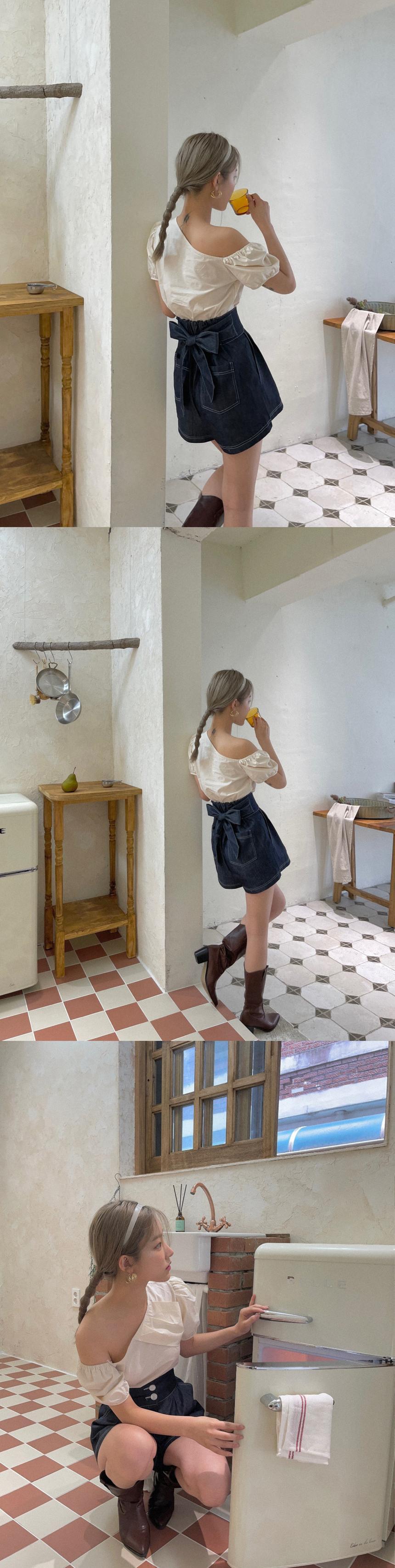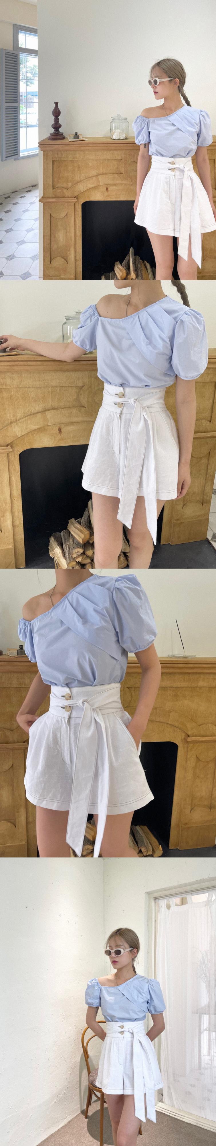 サマーカラーシャツ ハイウェストウェストボタンストラップ リボンショーツ 夏物 ブルマー 7/20 mi4627050966295