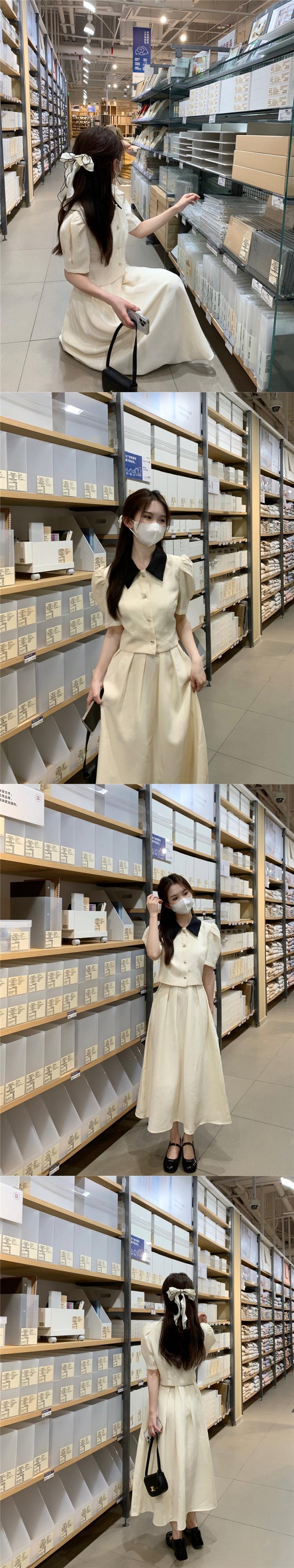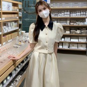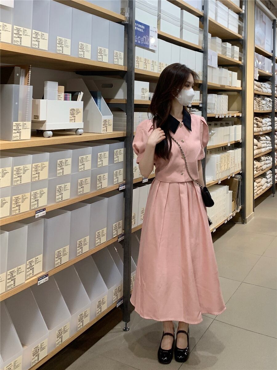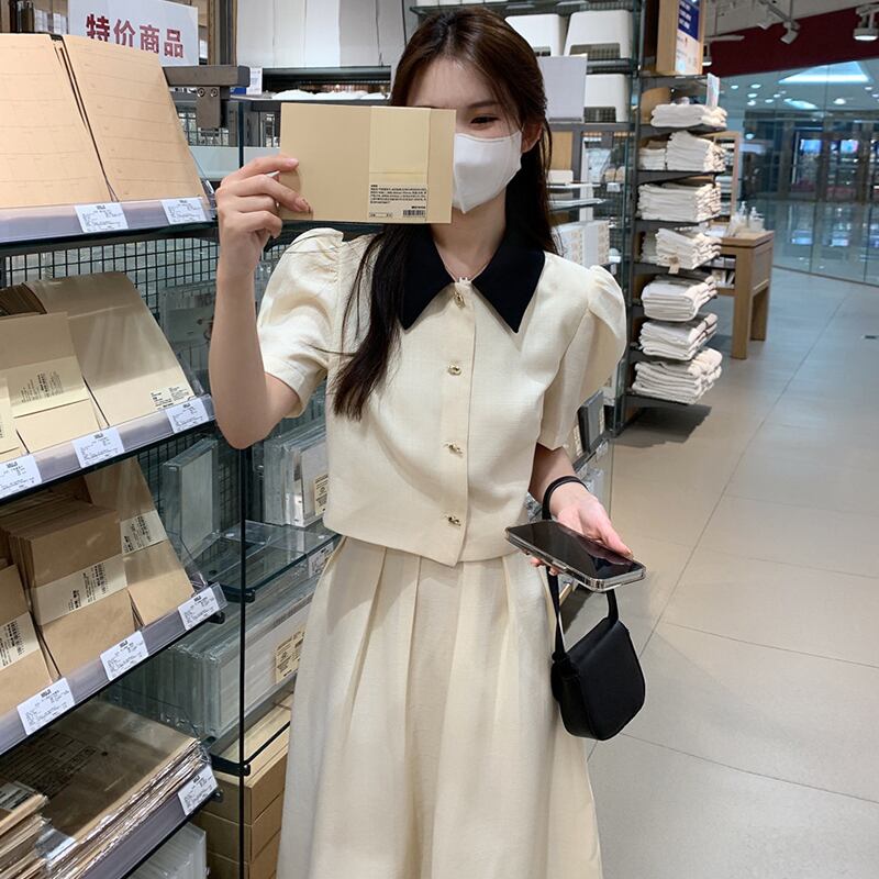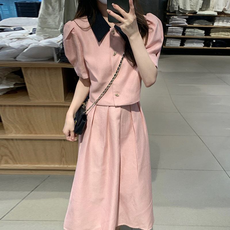 サマーカラースリーブショートシャツ ハイウェストウェストプリーツルーズスカート レディース 夏物 7/20 mi4698279203909