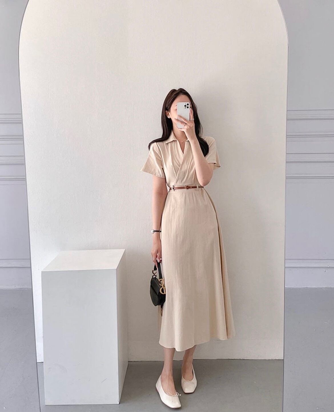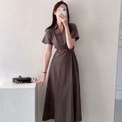 サマースタンダードクロスカラーウェスト薄手ロングドレス ベルト レディース レトロ 夏物 ハーネス 7/20 mi4622948918619