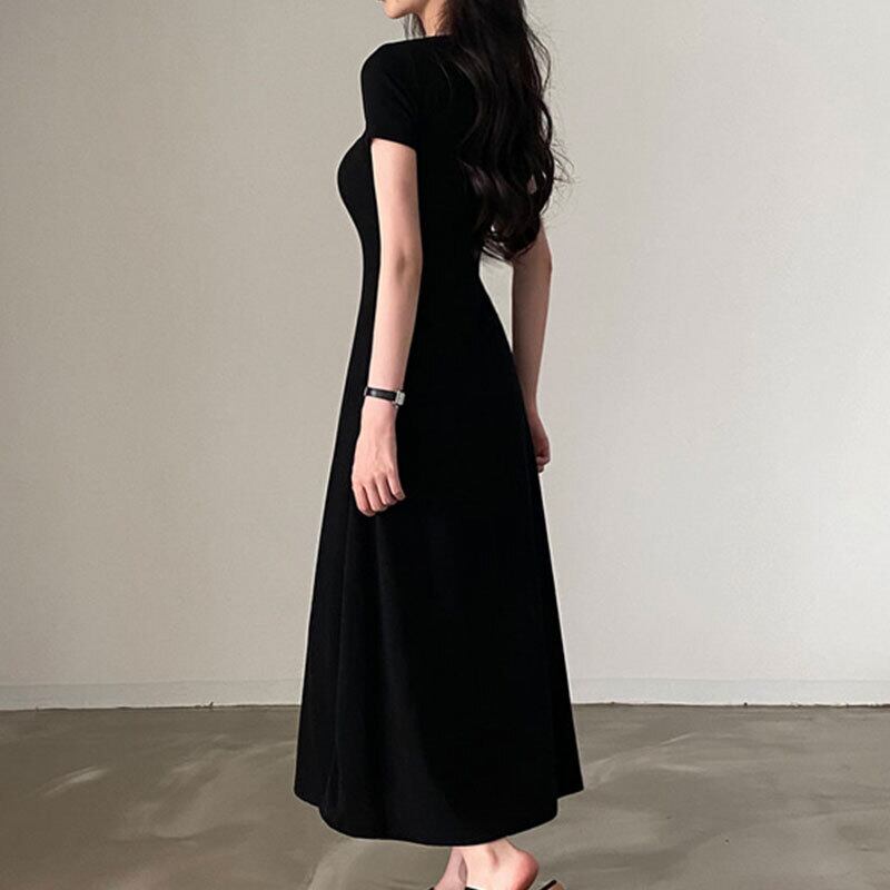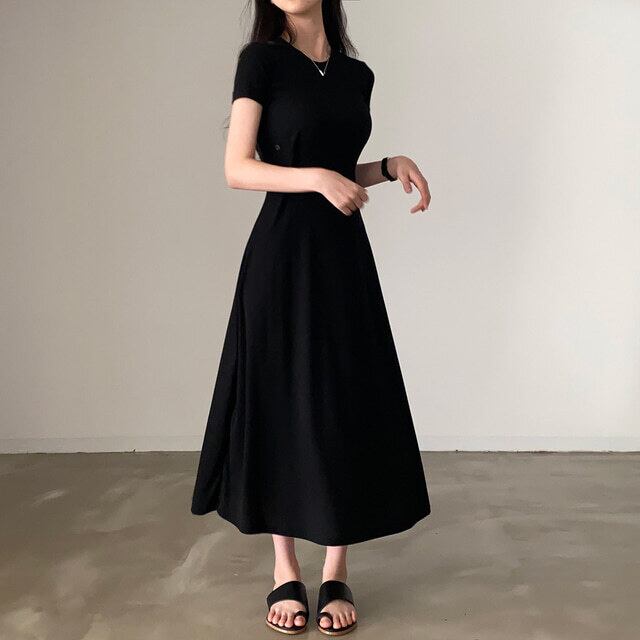 サマースタンダードラウンドネックウェストスリムソリッド カラーAラインドレス レトロ 夏物 Oネック ソリッドカラー 7/20 mi4656398117091
