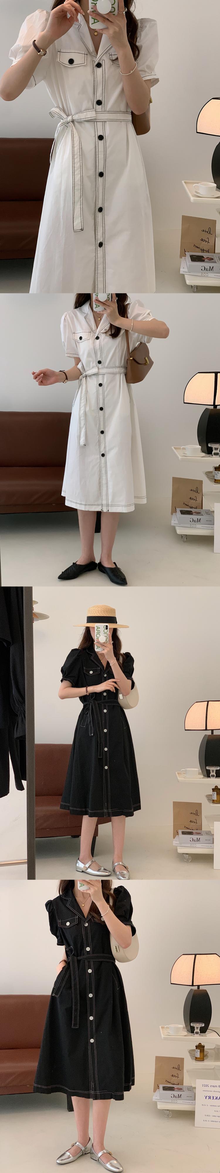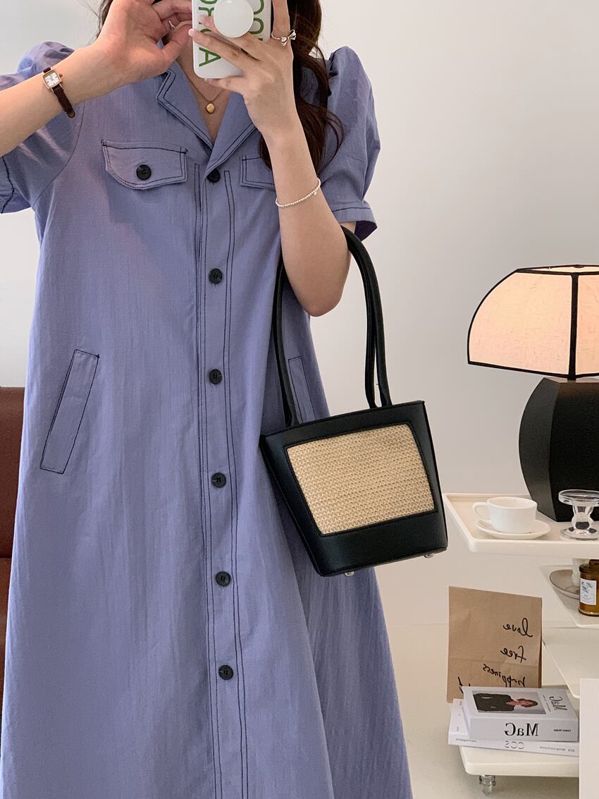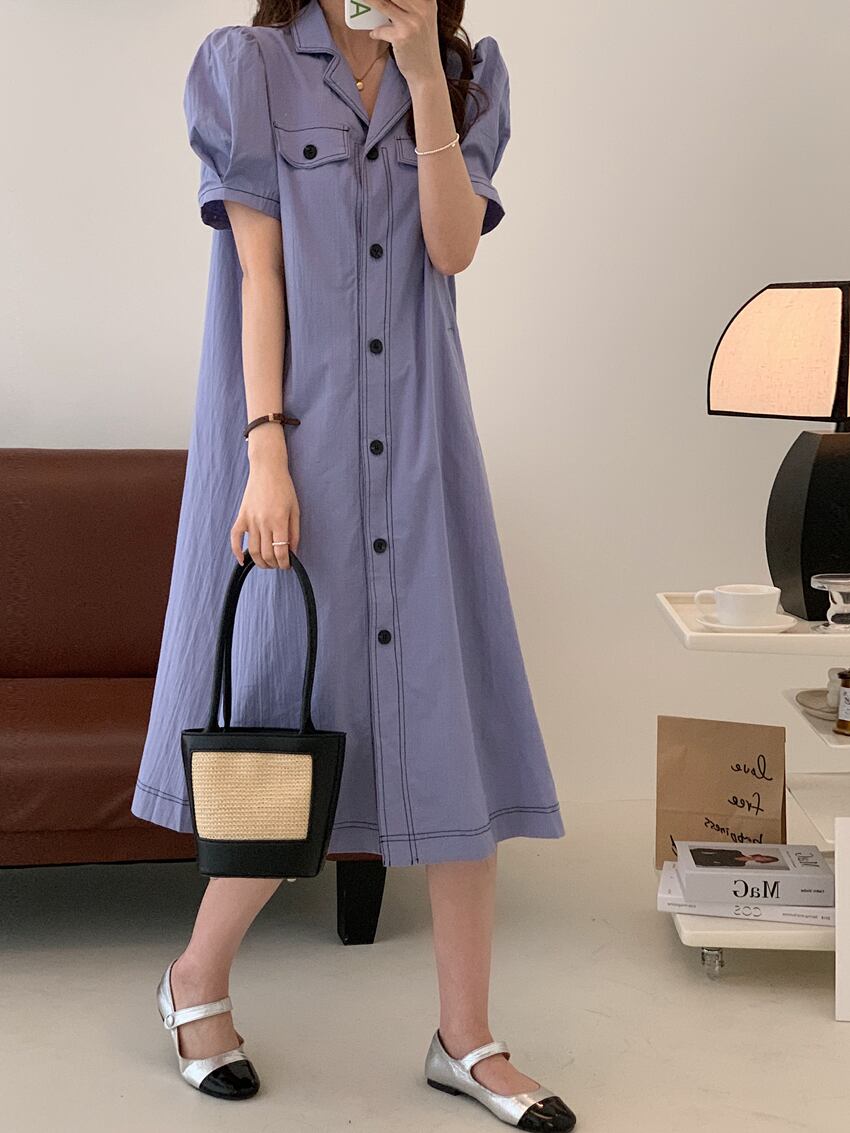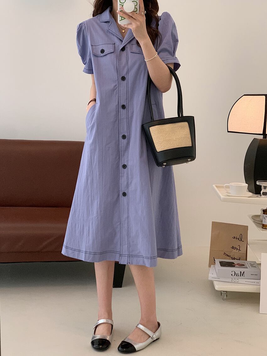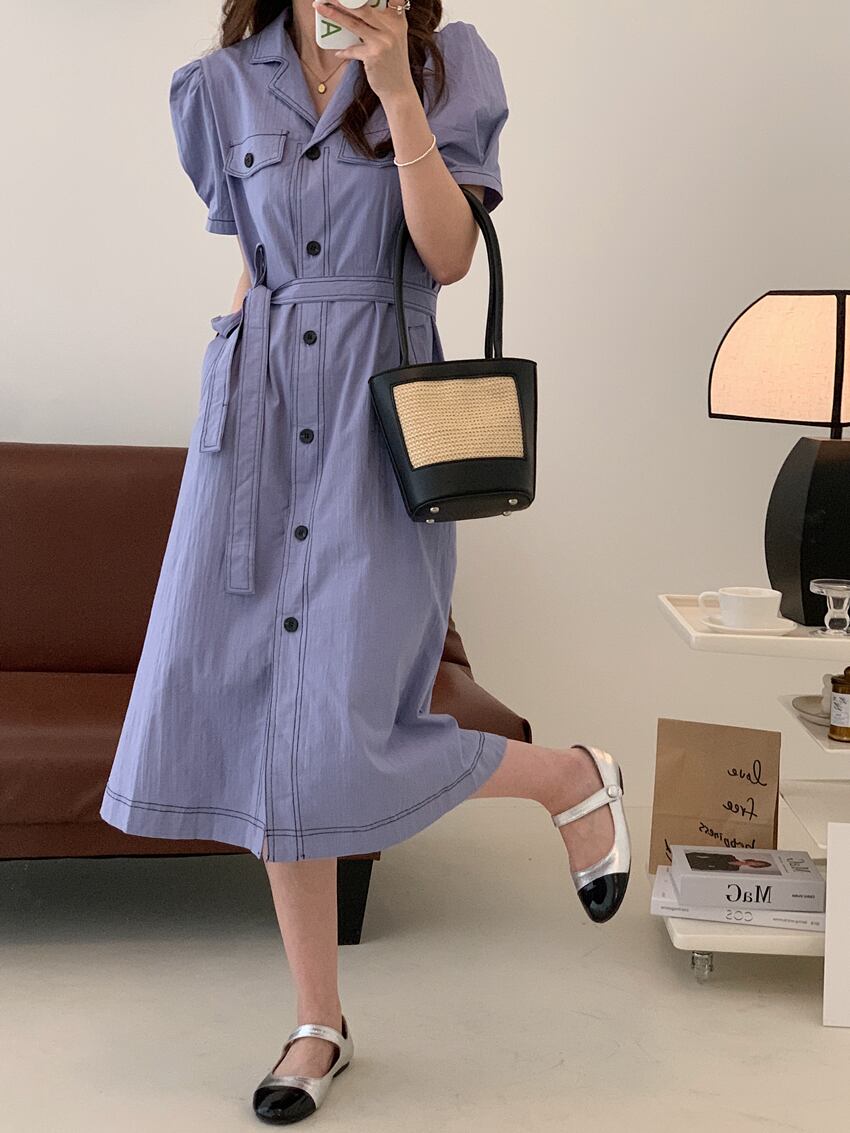 サマースタイルスタンダードラインウェストスリーブドレス レトロ 夏物 7/20 mi4679690962508