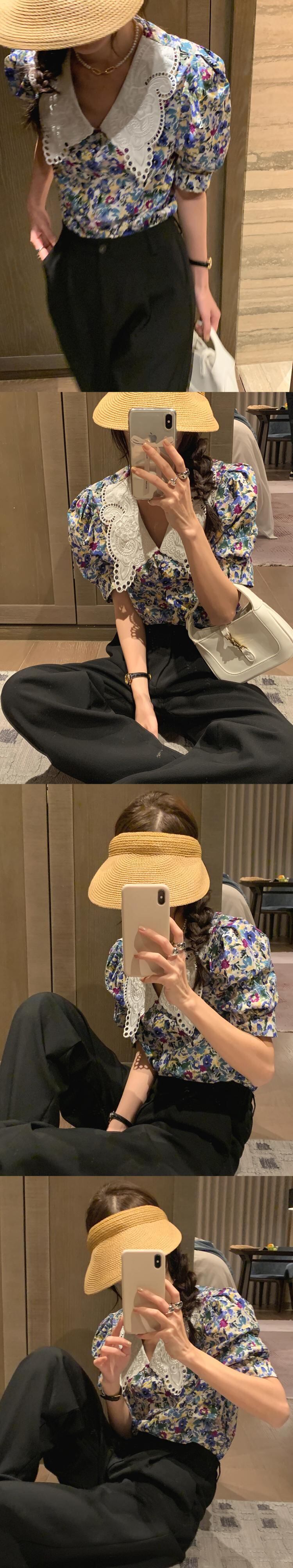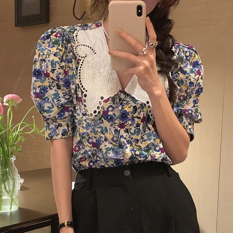 サマースタンダードレース刺繍フローラルシャツ トップス レディース レトロ 夏物 花柄 7/20 mi4617418034878
