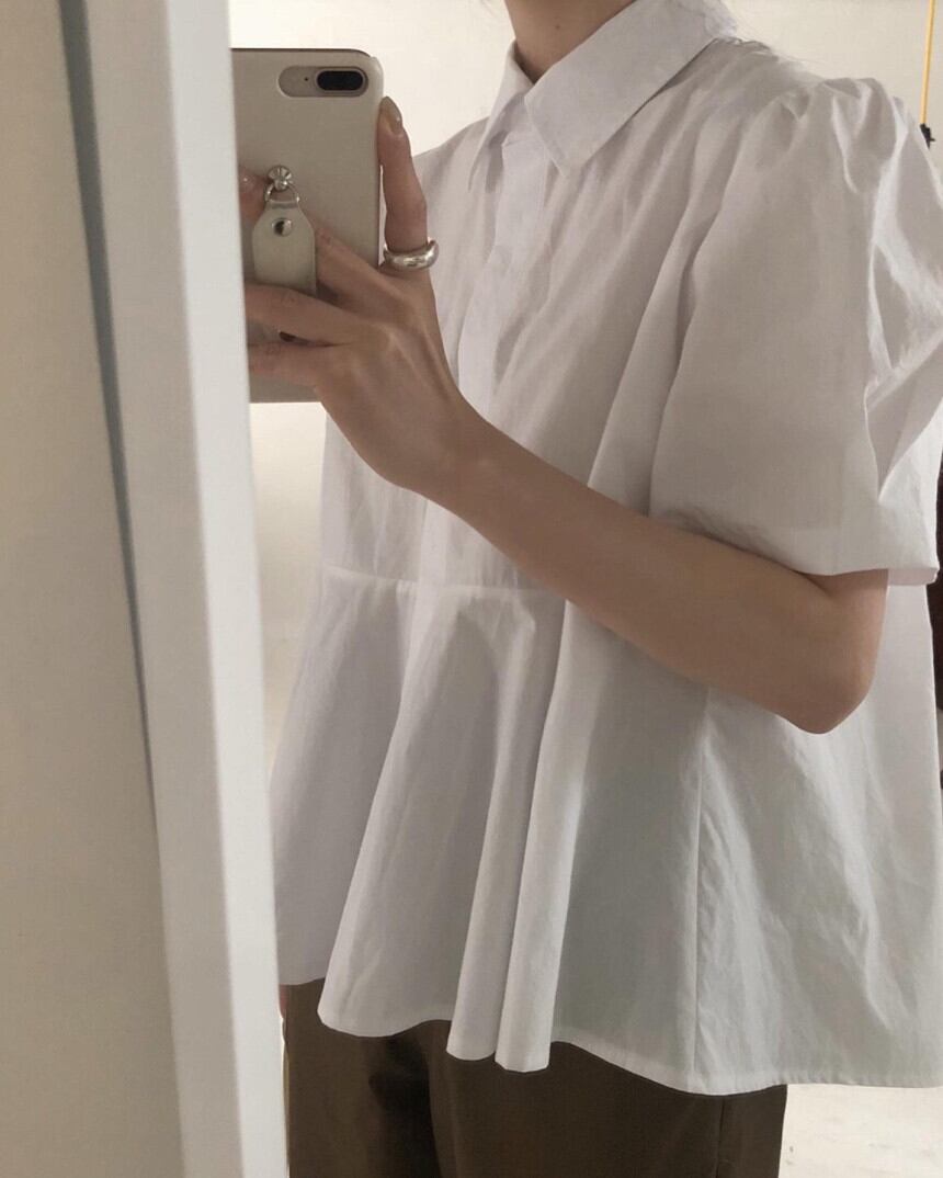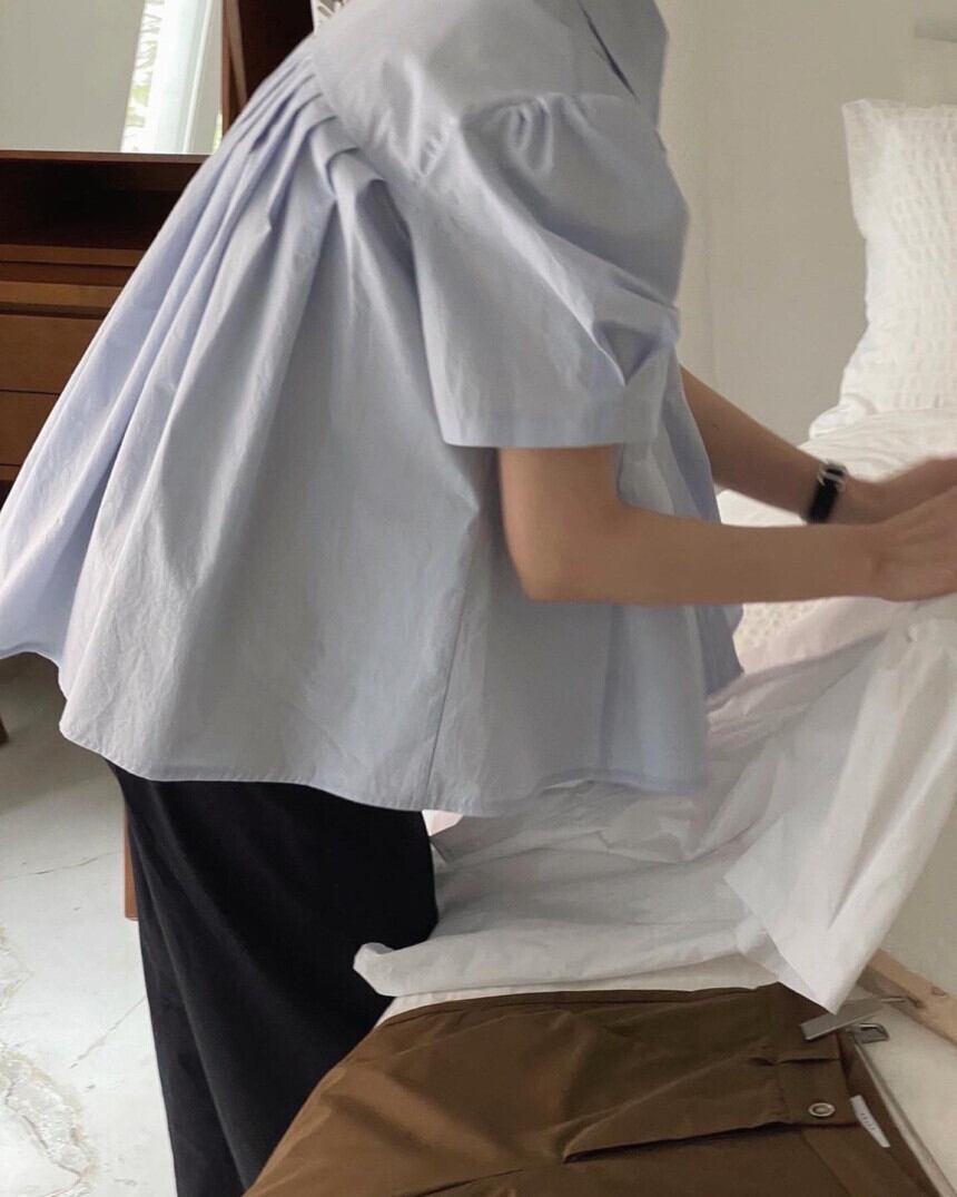 サマーバックプリーツルーズカジュアルソリッド カラーシャツ レディース 夏物 ソリッドカラー 7/20 mi4671927286427
