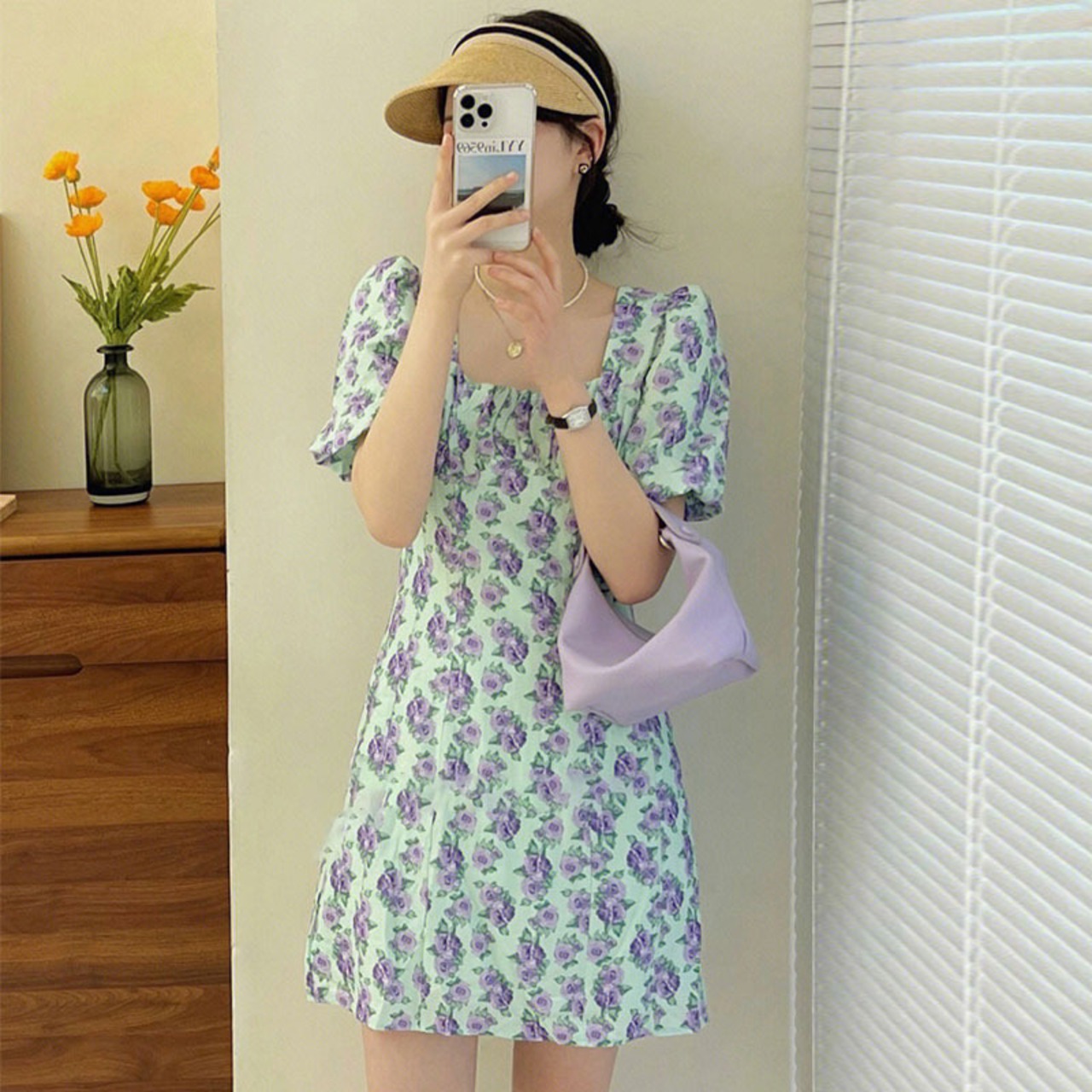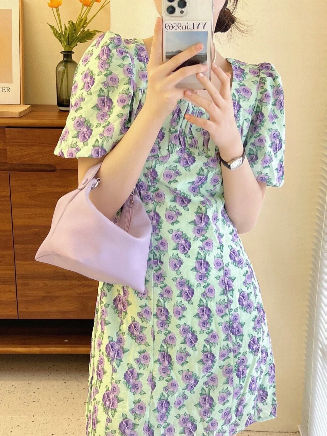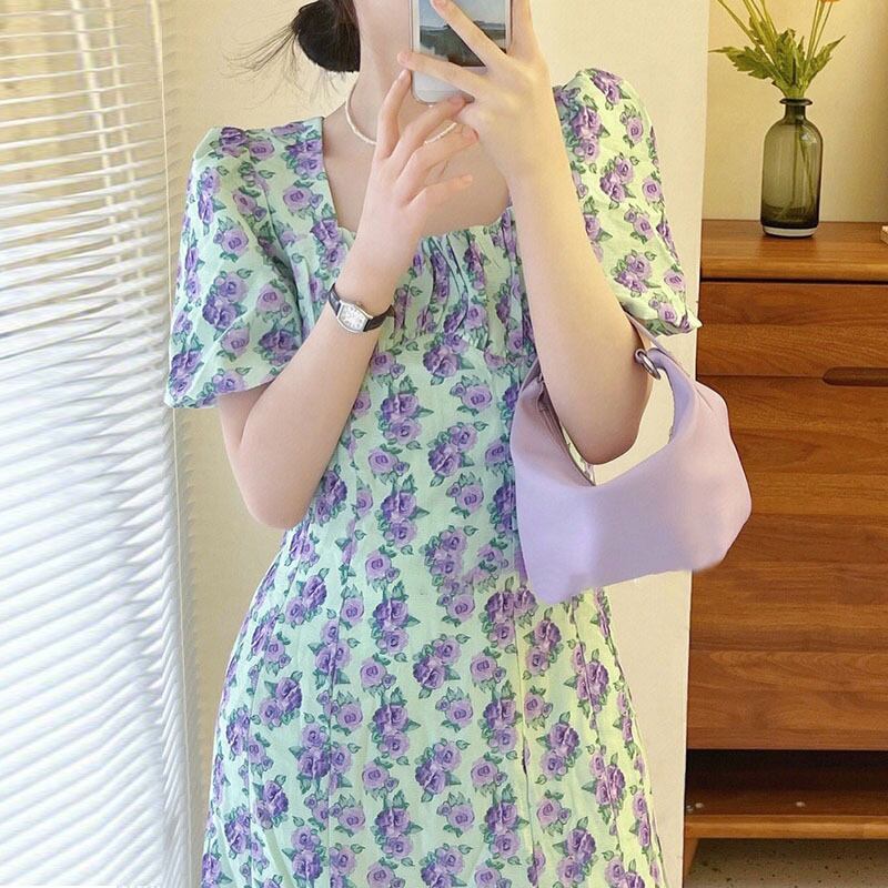 サマーカラーウェスト薄手フローラルドレス 夏物 花柄 スクウェア 7/20 mi4685569074105