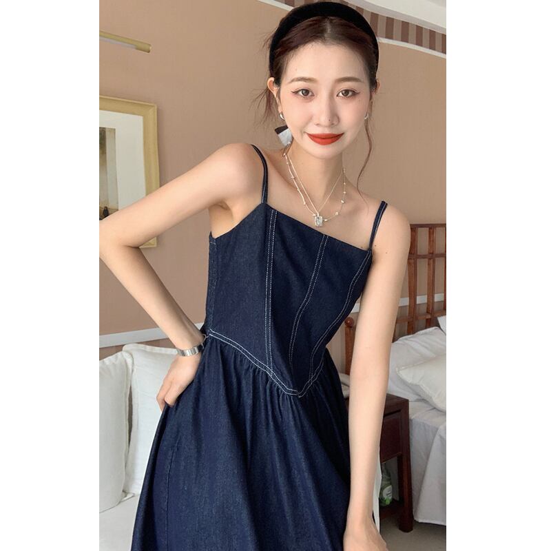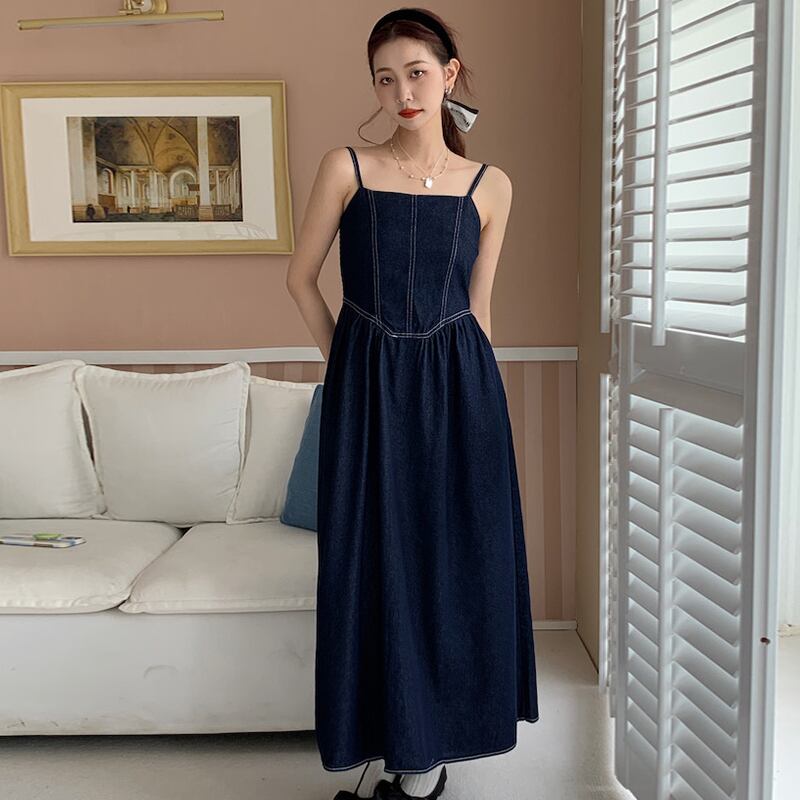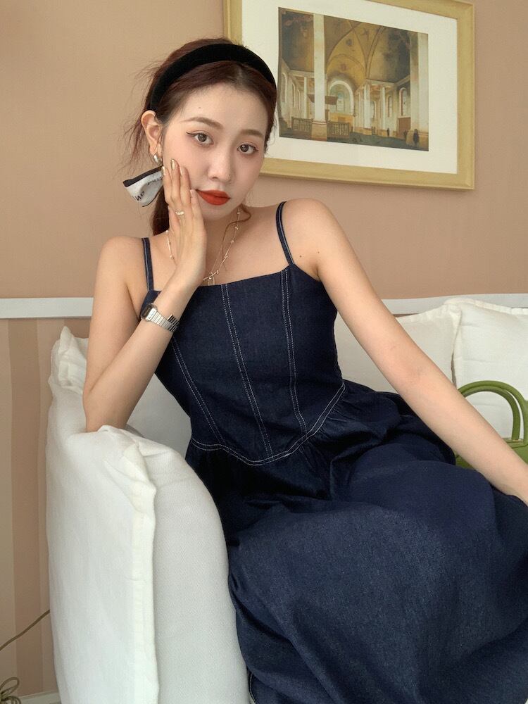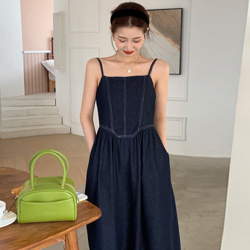 サマースタンダードカラーウェストポケットドレス レトロ 夏物 スクウェア 7/20 mi4634657978684