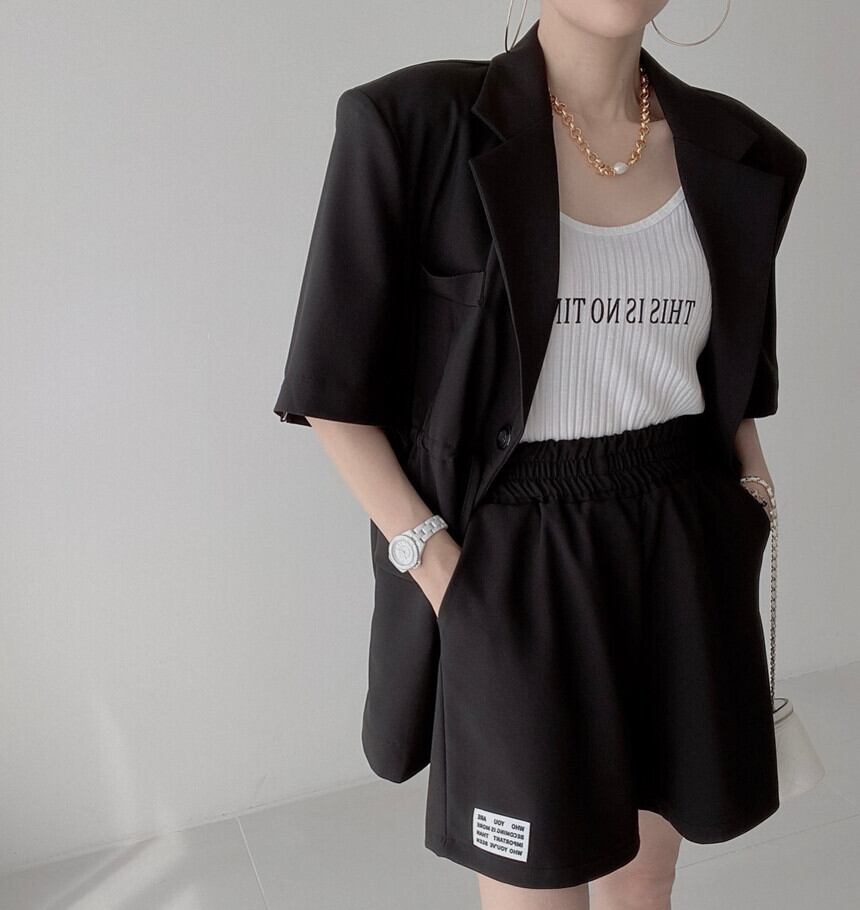 色:黒いジャケット,白いコート,アプリコットコート,グリーンジャケット,黒のショートパンツ,ホワイトショーツ,アプリコットショーツ,グリーンショートパンツ