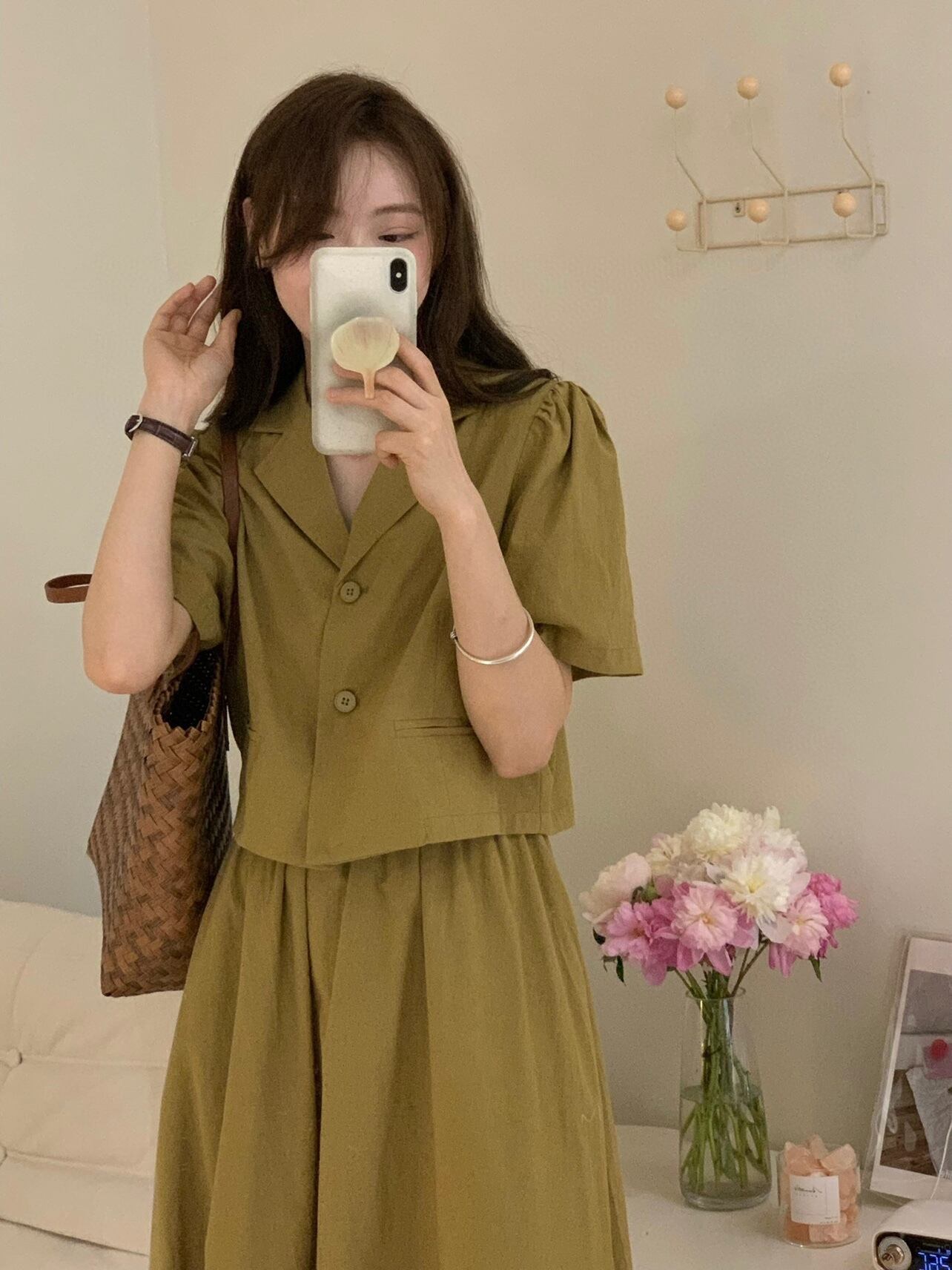サマーカラールーズボタンスリーブシャツ ハイウェストウェストスリムスカート レディース 夏物 7/20 mi4626272644791
