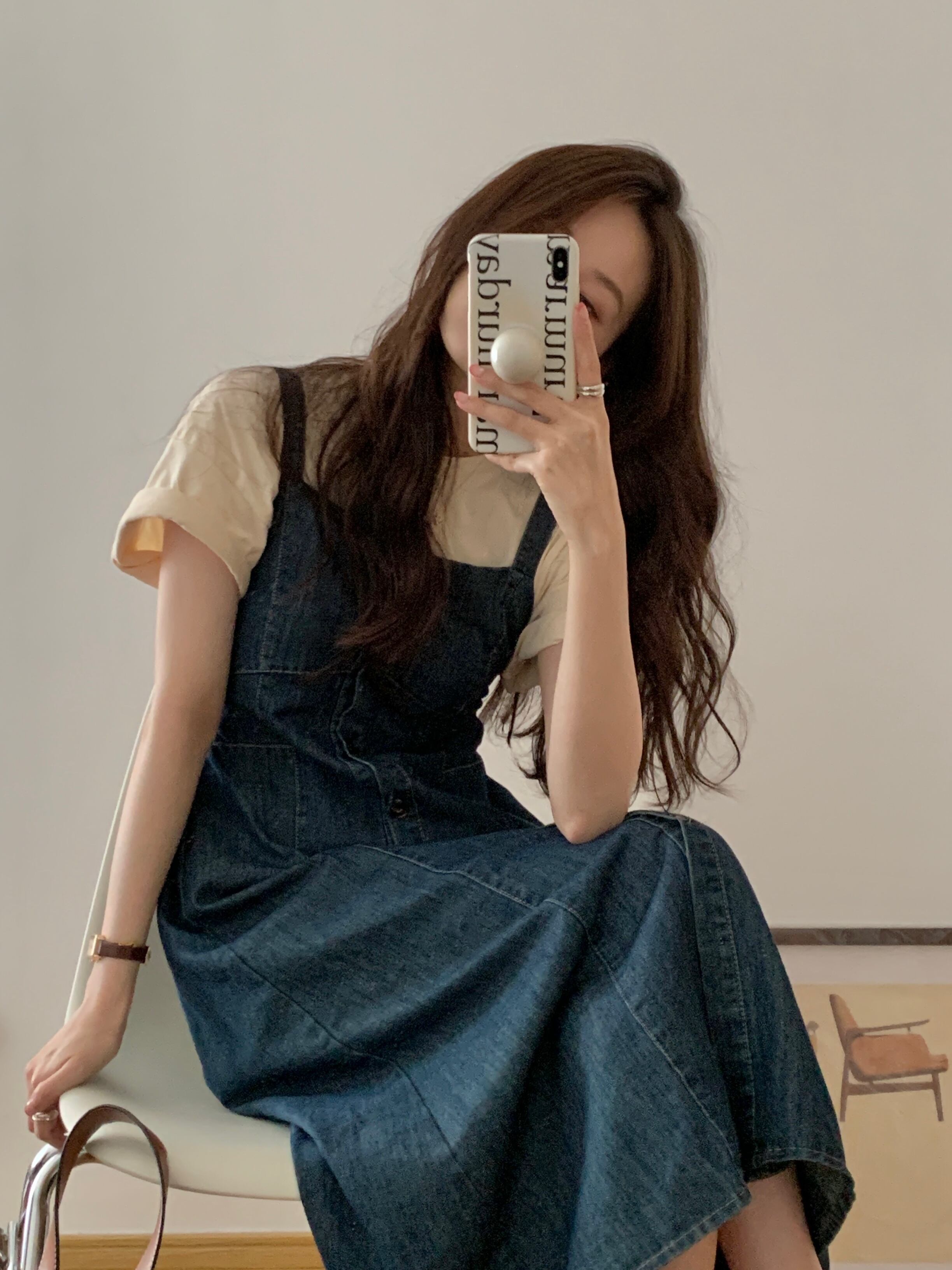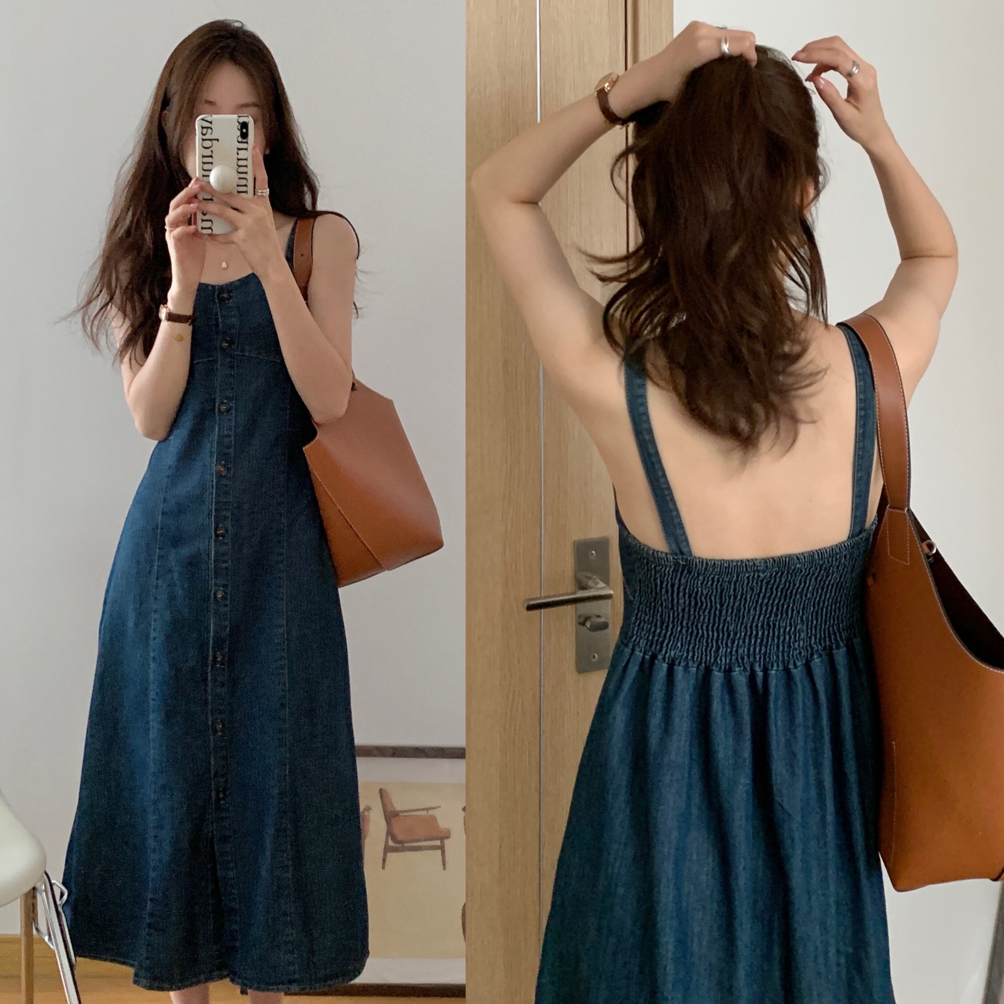 サマースタンダードカラーラインハイウェストウェストスリムノースリーブドレス レトロ 夏物 スクウェア 7/20 mi4646913246612