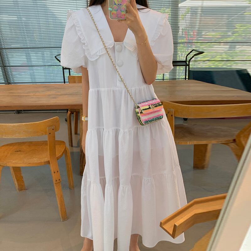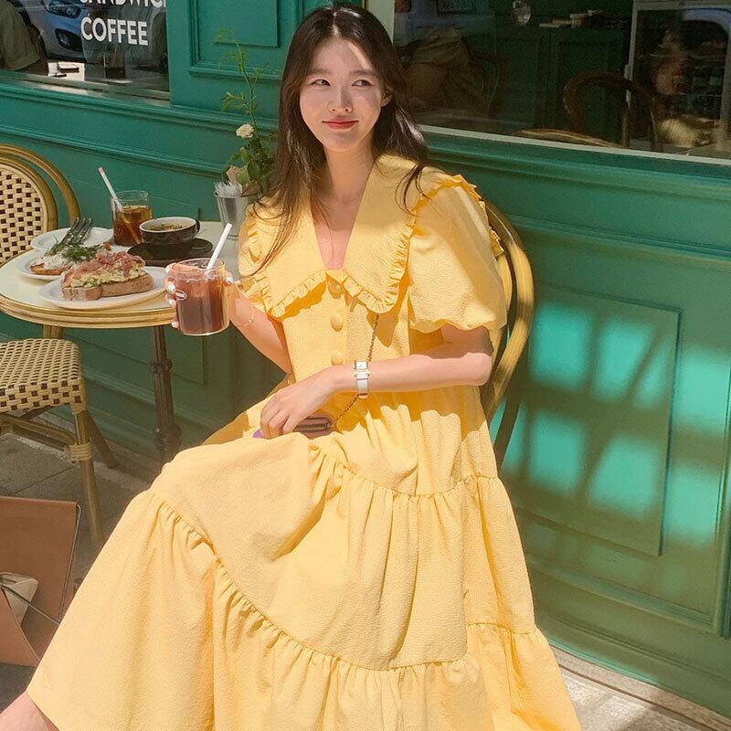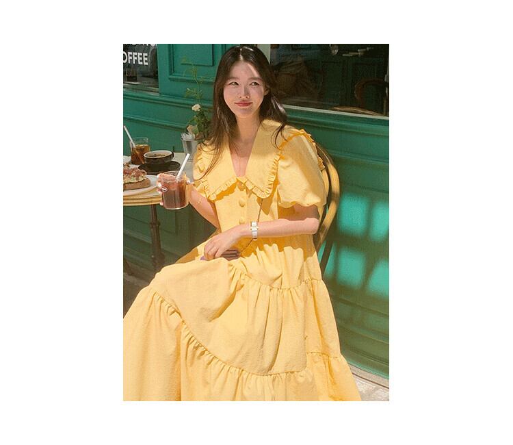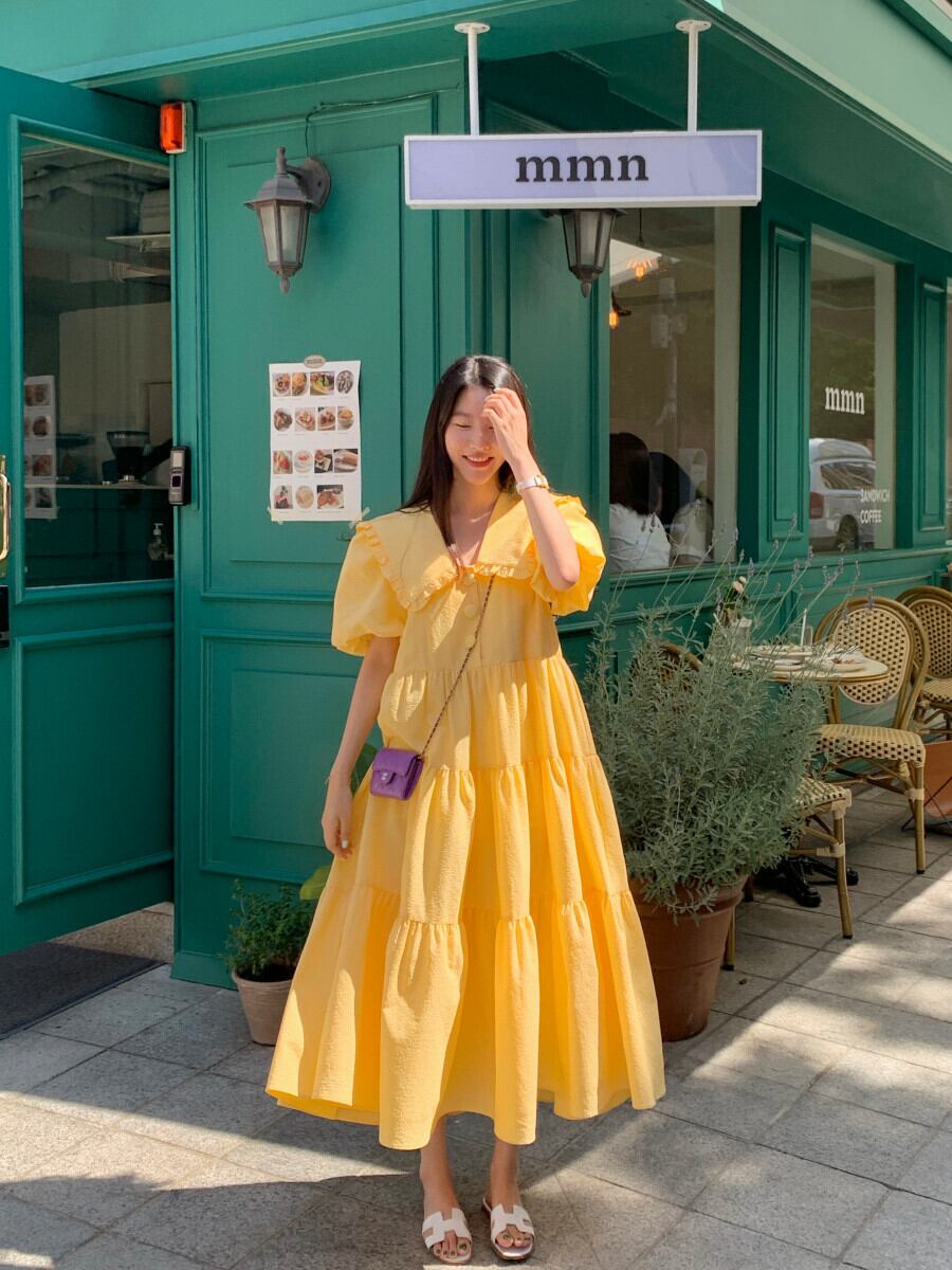 サマーカラープリーツスリーブドレス レッド ランタンスリーブ 夏物 ステッチ 7/20 mi4694661858872