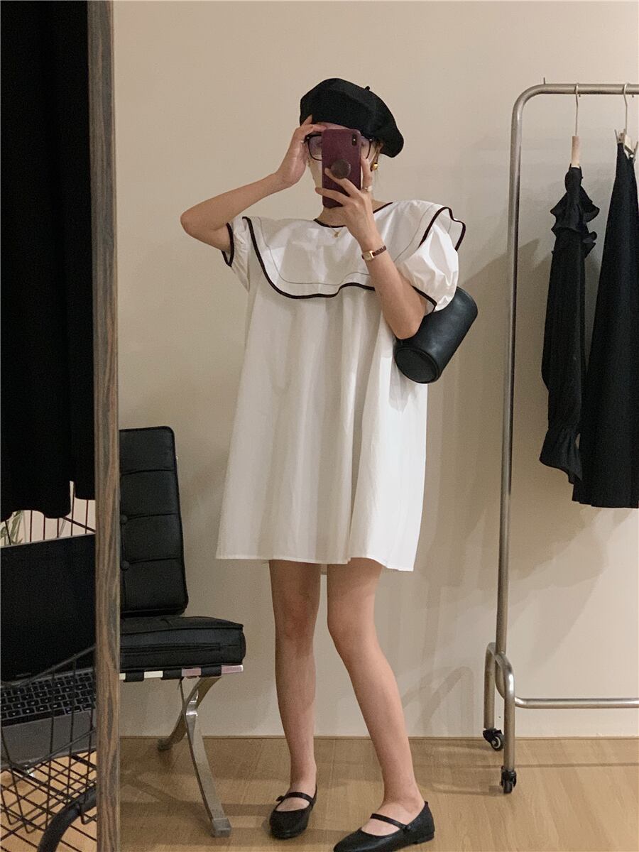 サマースタンダードカラールーズスリーブカジュアルドレス レトロ 夏物 7/20 mi4673440898955