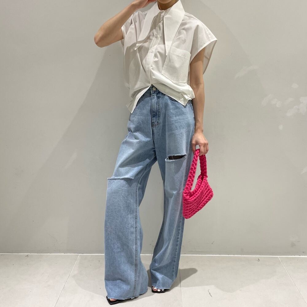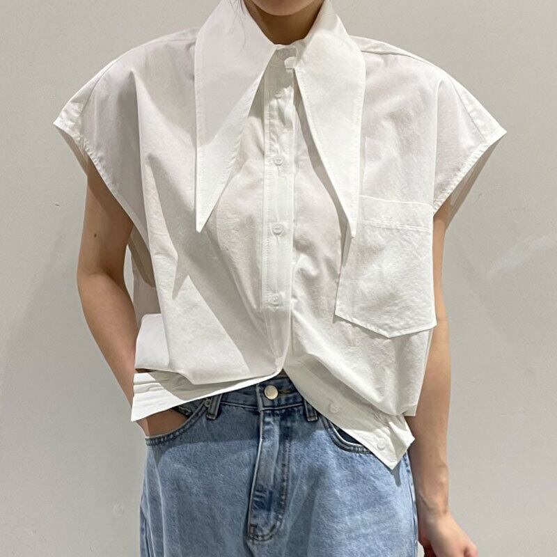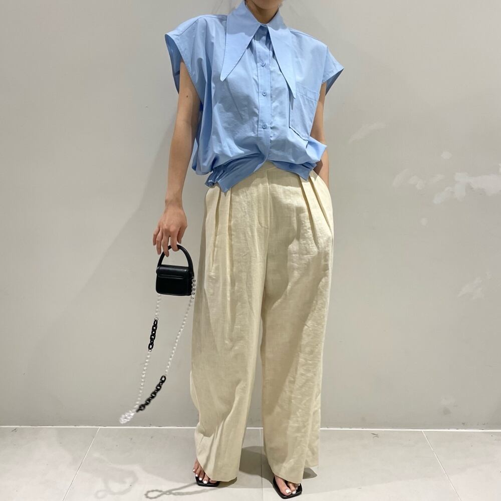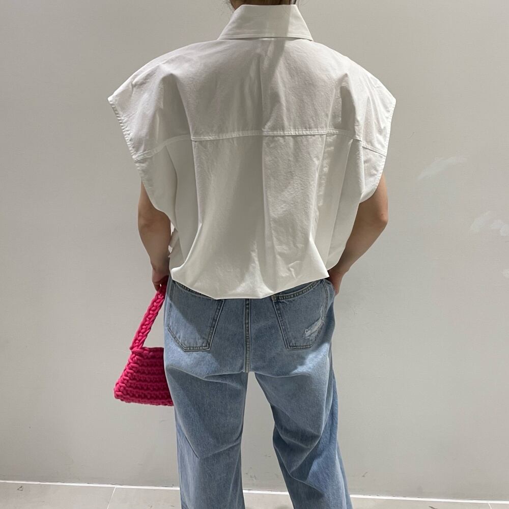 サマーブルーカラールーズポケットノースリーブシャツ トップス レディース 夏物 7/20 mi4629386761749