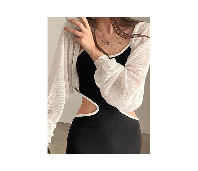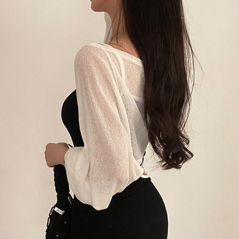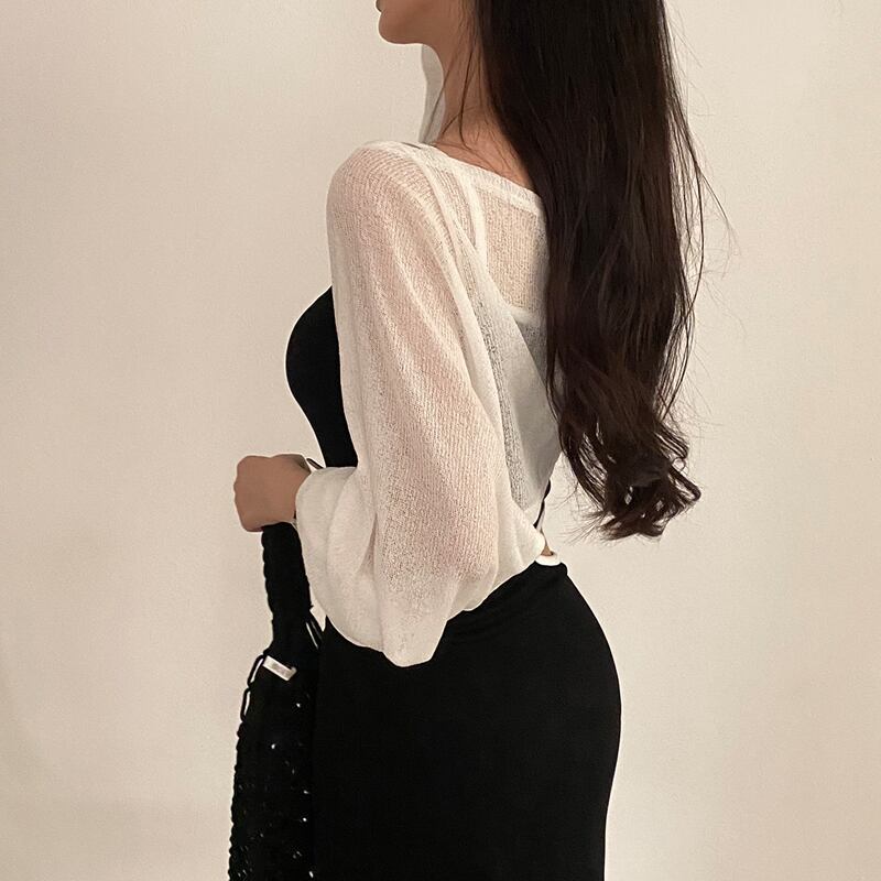 サマー薄手ルーズショートニットセーター レディース ロング 夏物 シルク 7/20 mi4679876074701
