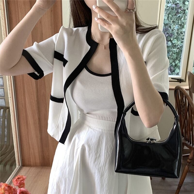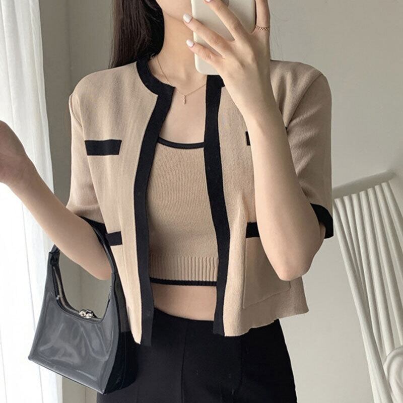 サマースタンダードラウンドネックカラーニットカーディガン レトロ 夏物 Oネック 7/20 mi4683227678876