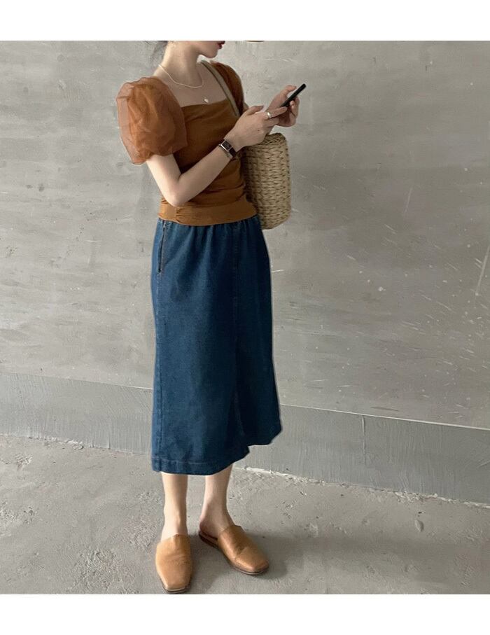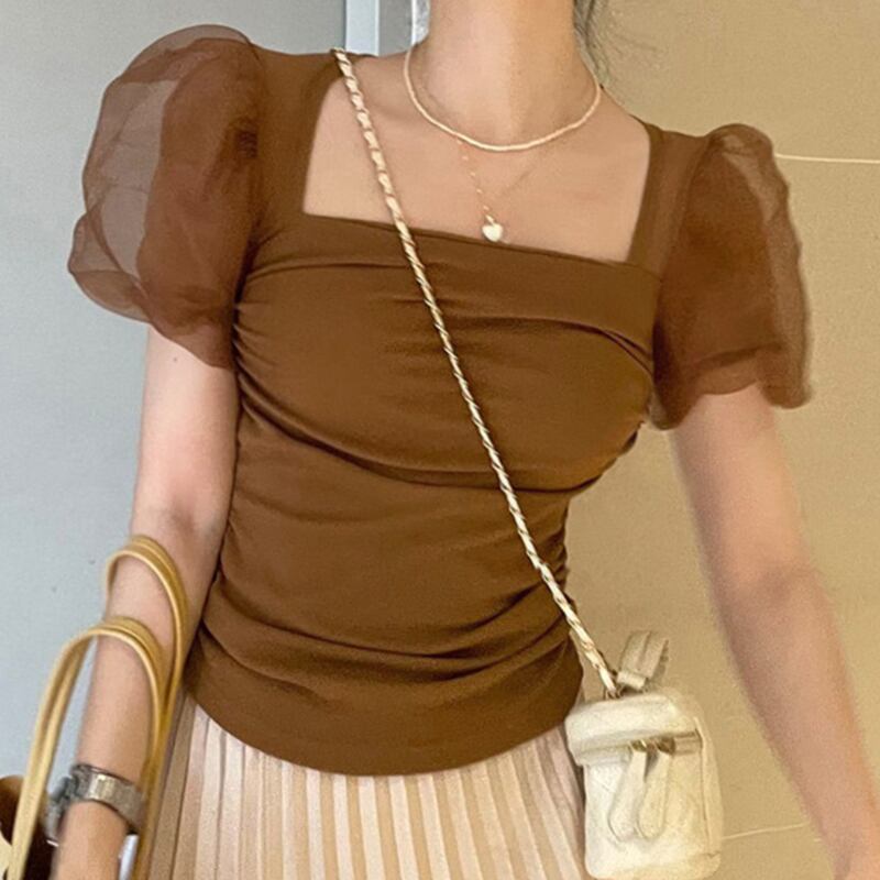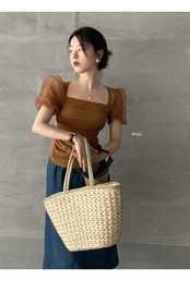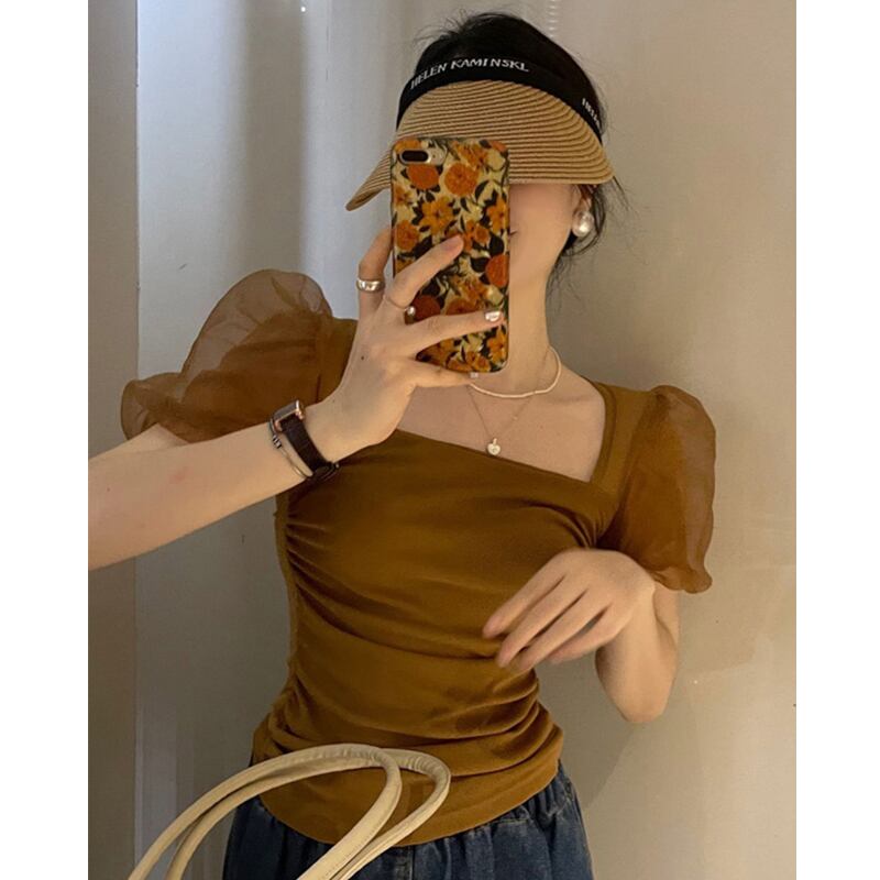 サマースタイルカラースリムフィットスリーブシャツ レディース 夏物 スクウェア ステッチ 7/20 mi461674358789