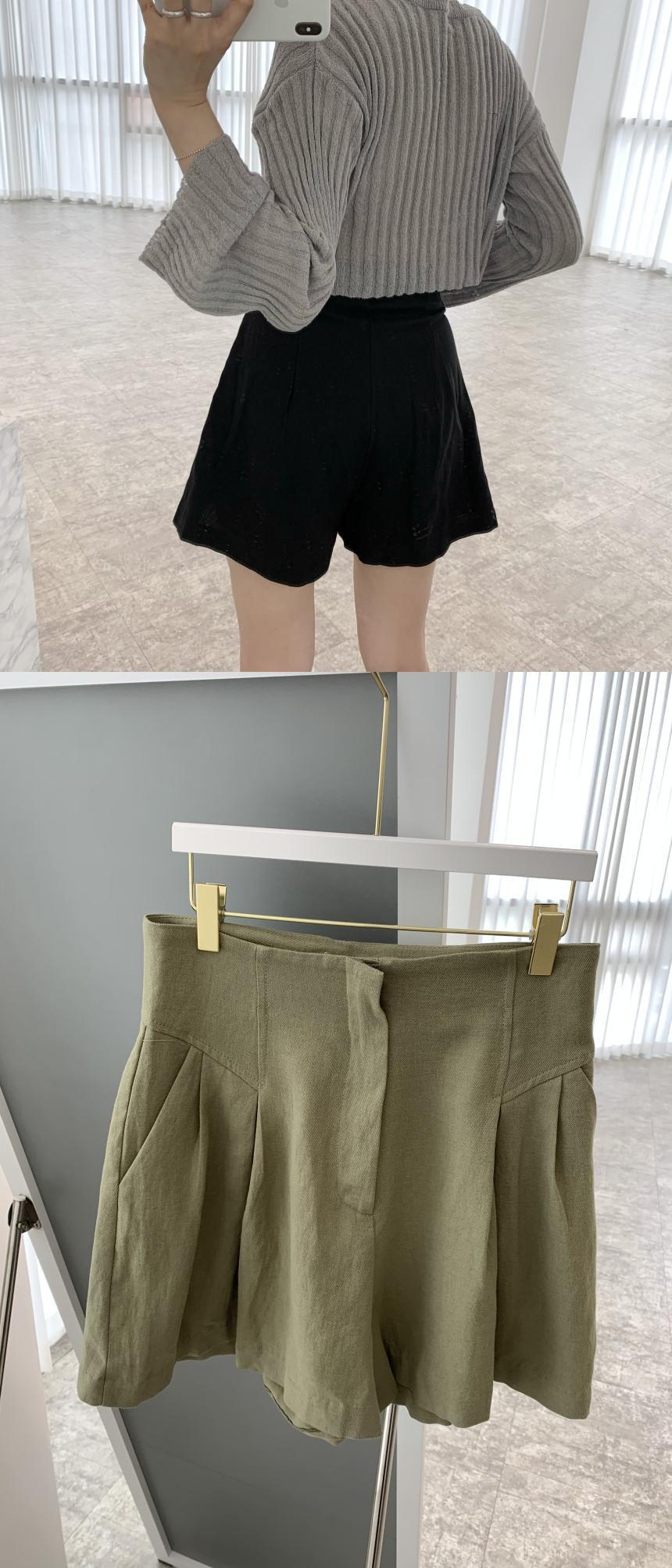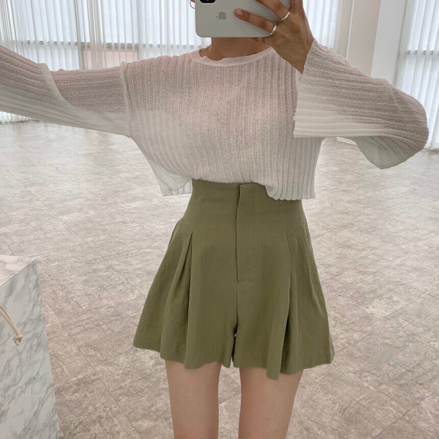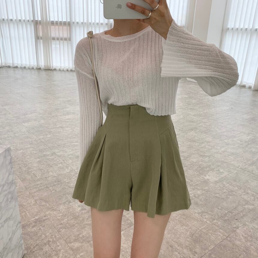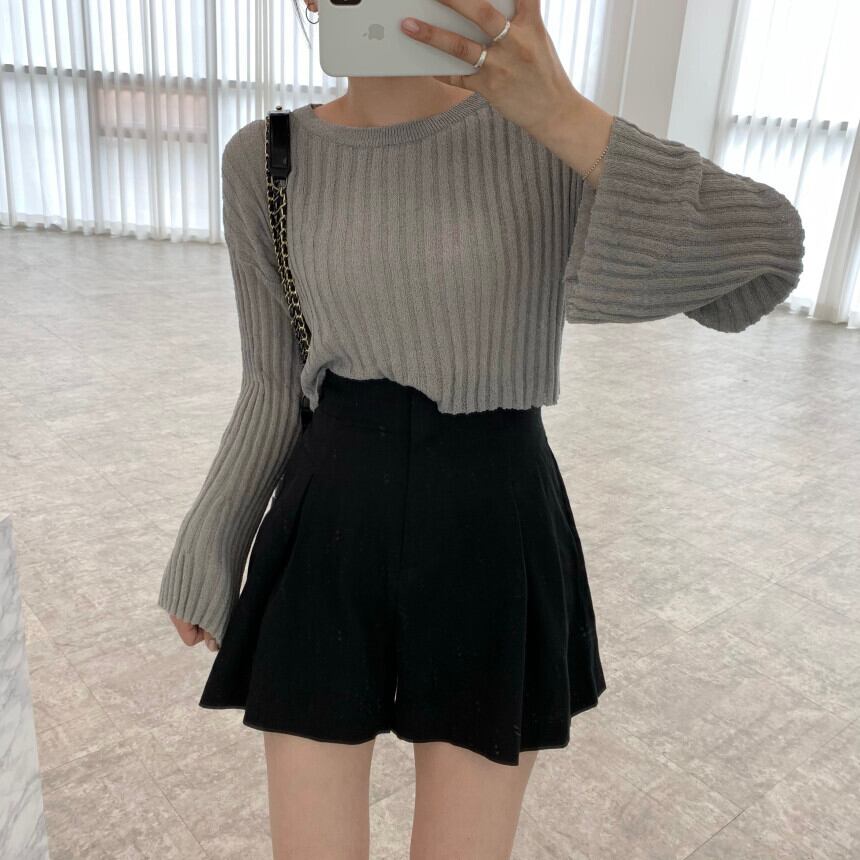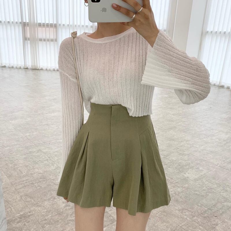 スタンダードラウンドネックルーズショートニットセーター ハイウェストウェストプリーツショーツ レディース コットン レトロ ブルマー Oネック 7/20 mi4642487992028