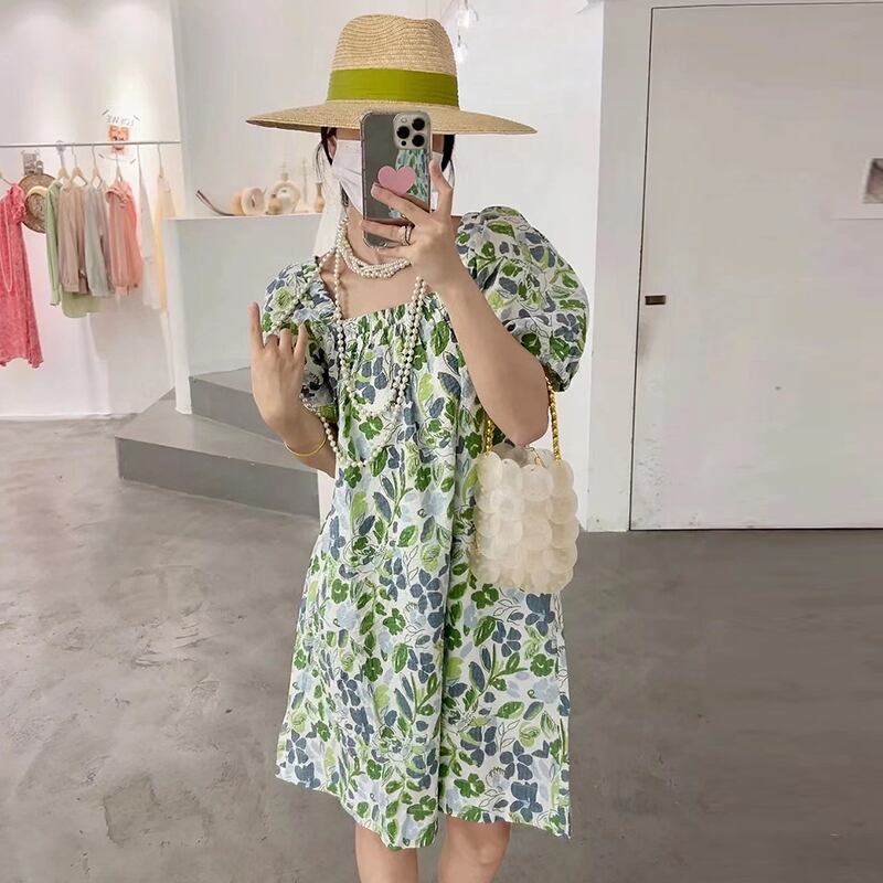 サマールーズスリーブプリント柄ドレス エレガント 夏物 7/20 mi468540397218