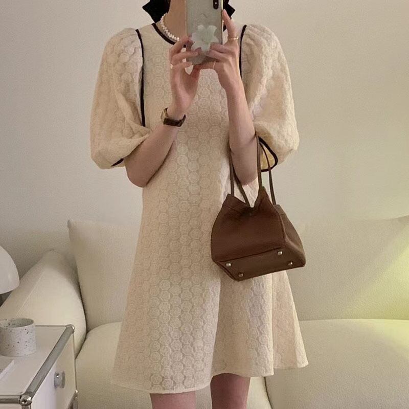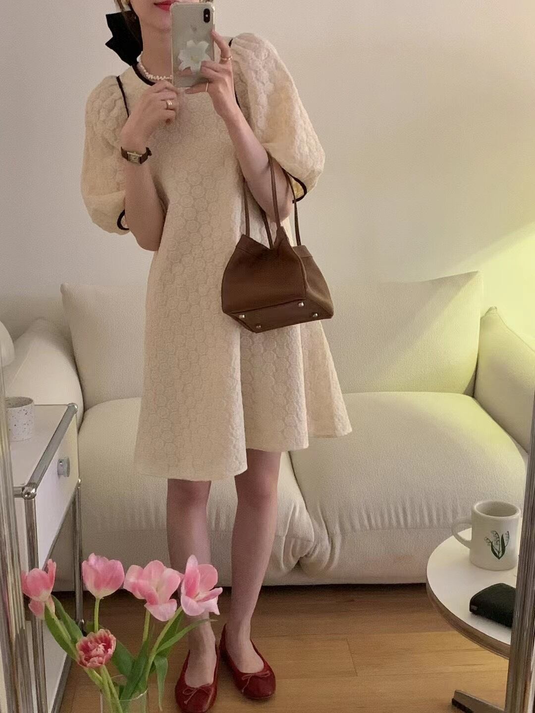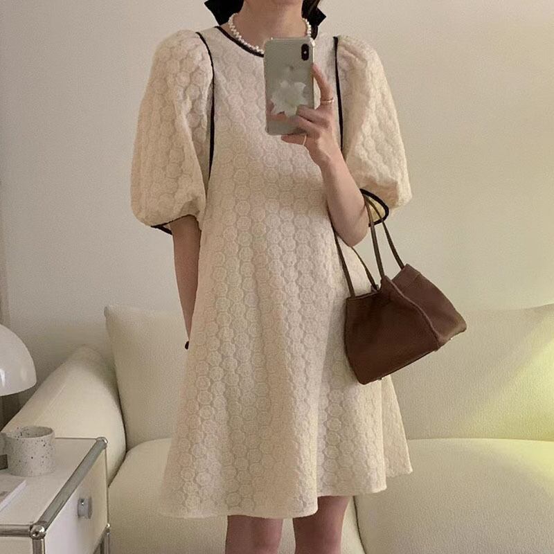 サマーラウンドネックカラージャカードルーズスリーブドレス エレガント 夏物 Oネック 7/20 mi4685488764430