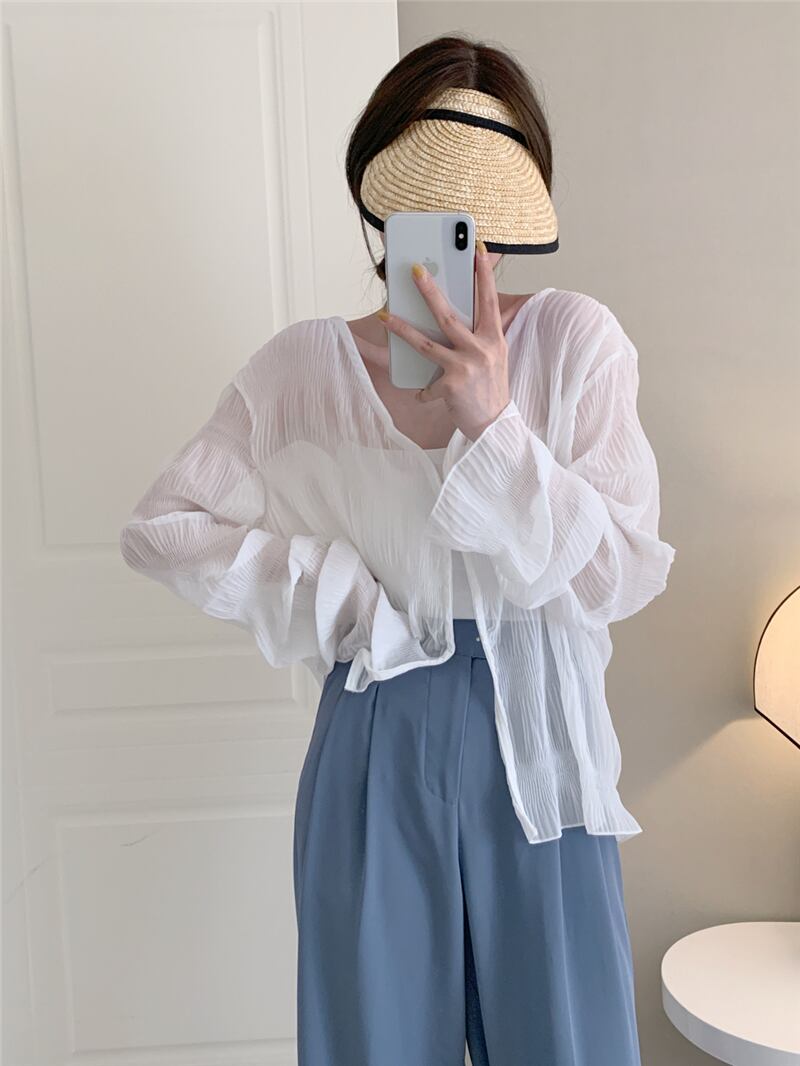 サマーVネックルーズ薄手カーディガンジャケット レディース ロング レッド 夏物 7/20 mi4669082658140