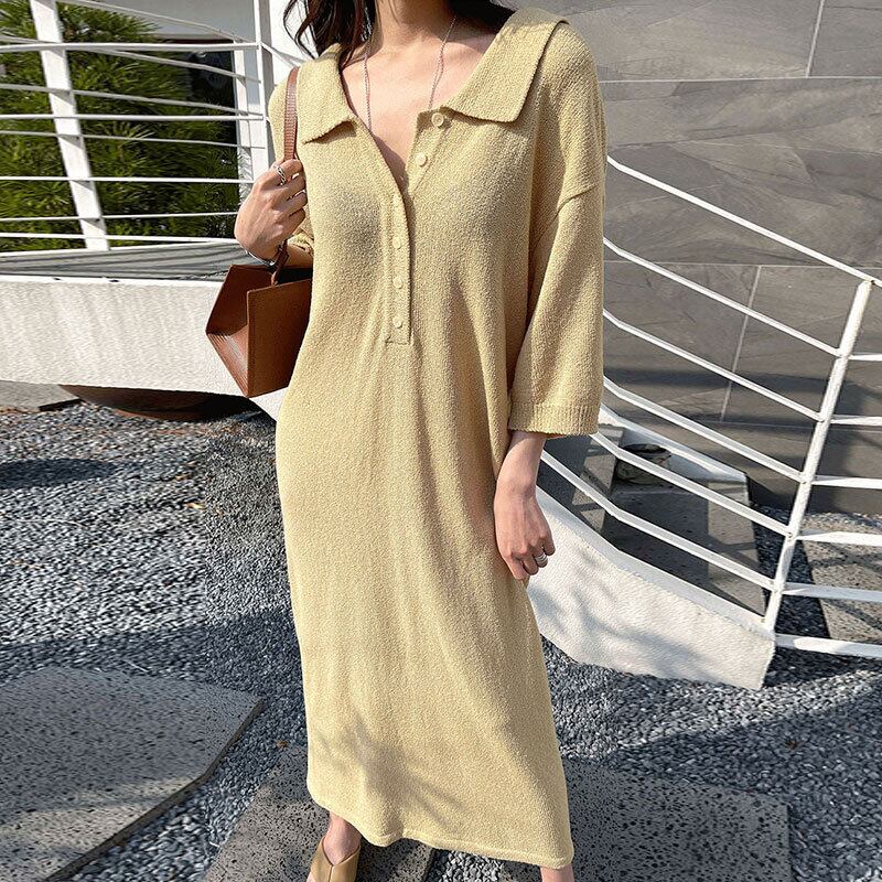 サマーイエローカラールーズカジュアルスリーブニットドレス レディース 夏物 7/20 mi4658057293892