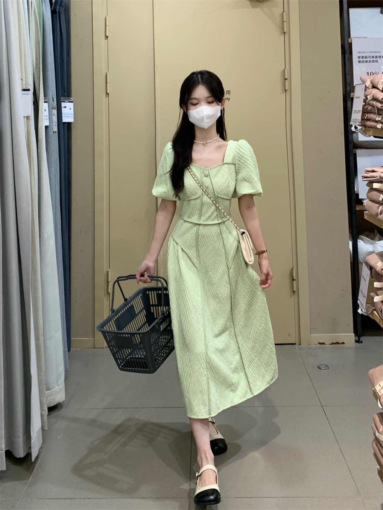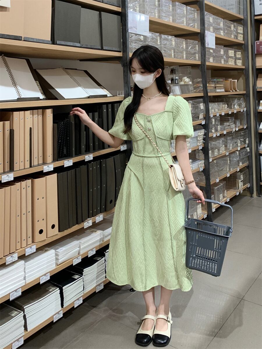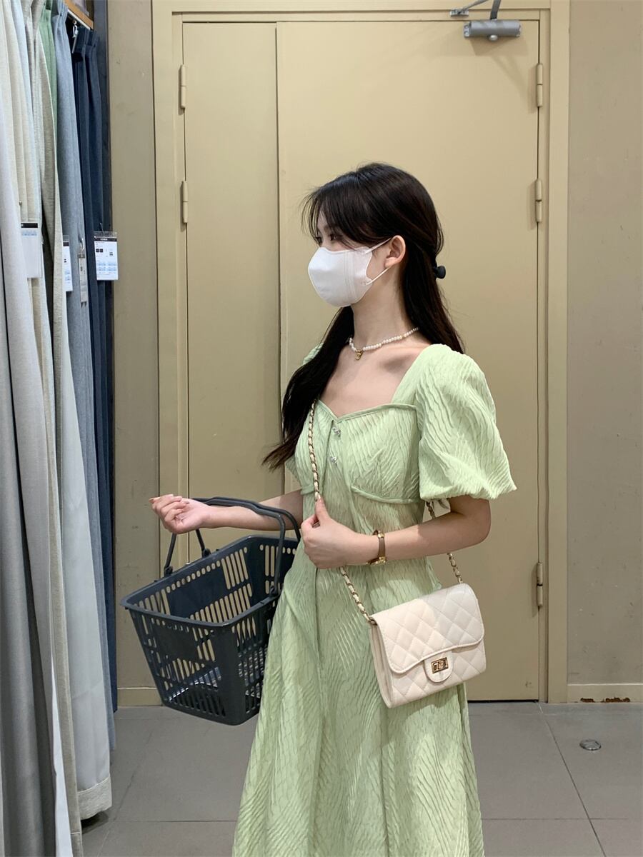 サマーカラーラインスリーブAラインドレス ランタンスリーブ 夏物 スクウェア 7/20 mi46450592371