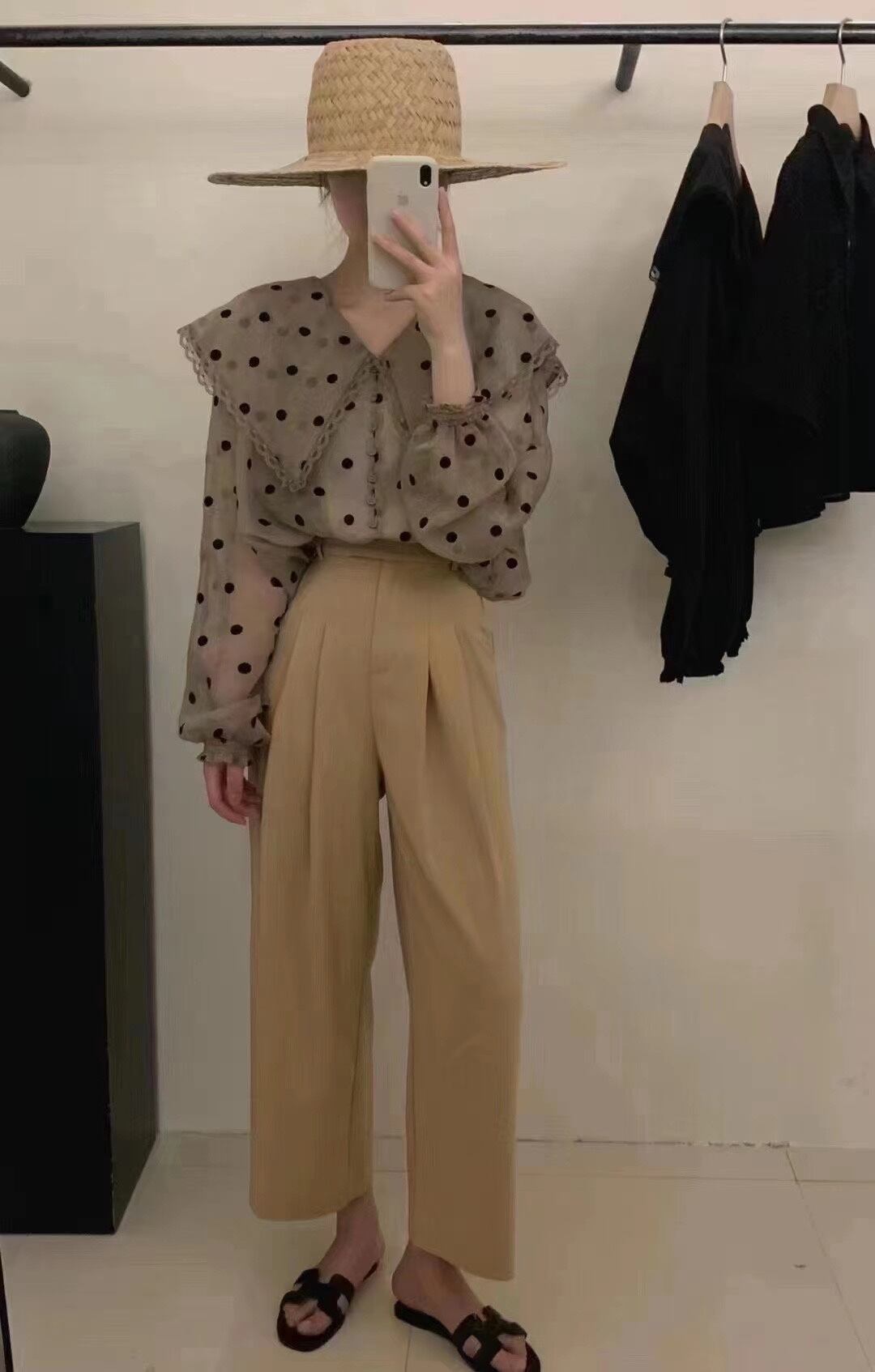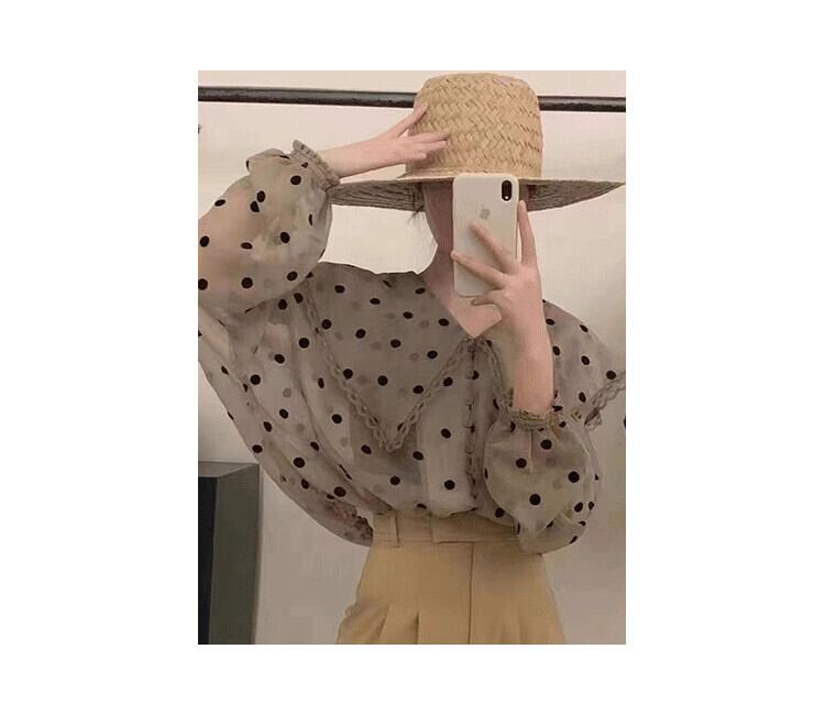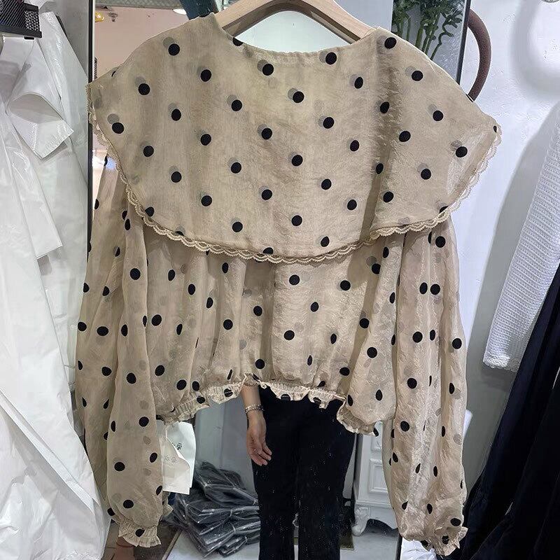 サマースタンダードレースカラー薄手水玉シャツ トップス ロング レトロ 夏物 7/20 mi4681610558010