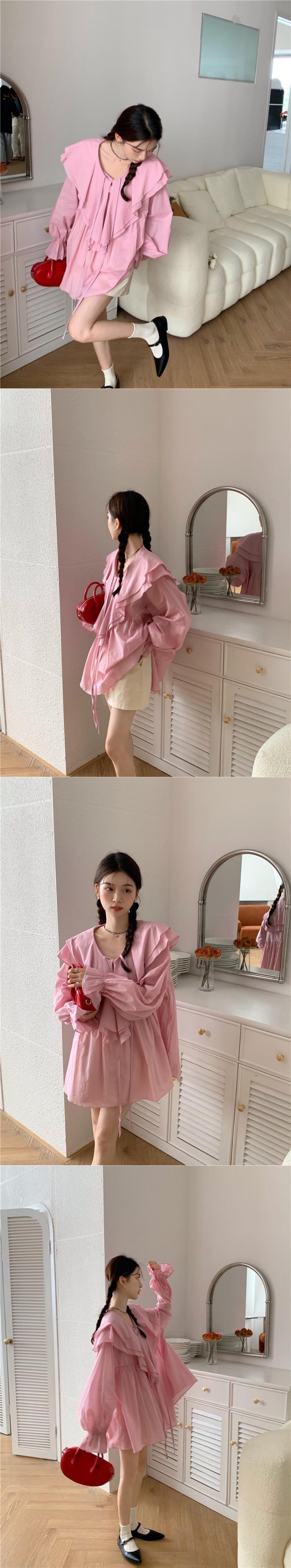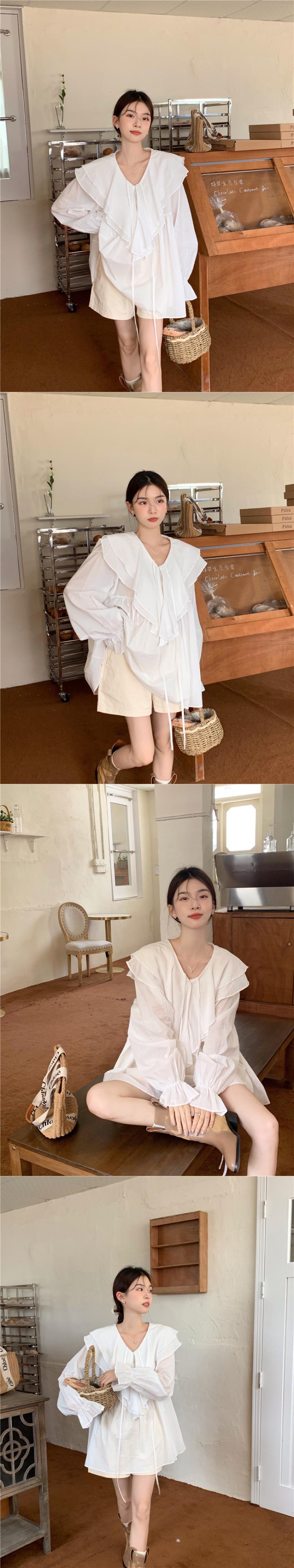 サマーレースVネックルーズカジュアルドレス ショートスカート レディース 夏物 7/20 mi462084096863