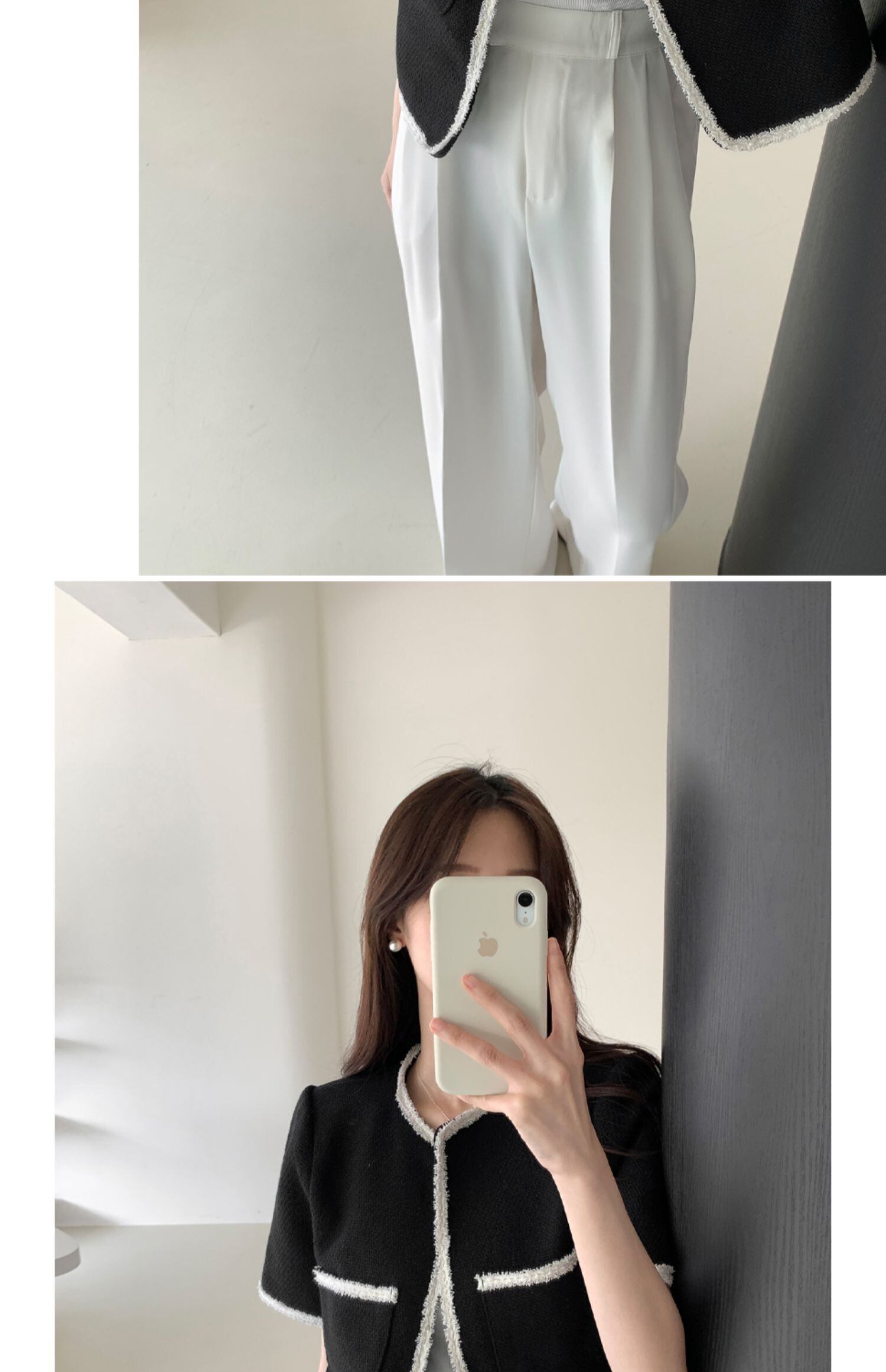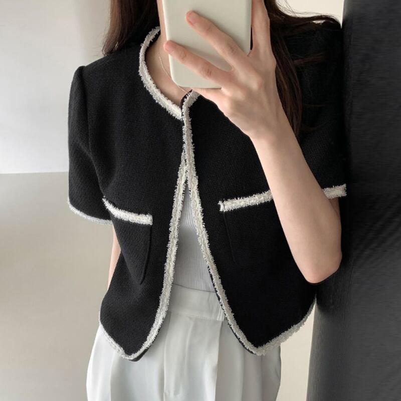 サマースタンダードラウンドネックカラールーズツィードショートコート レディース レトロ 夏物 Oネック 7/20 mi4667083144974