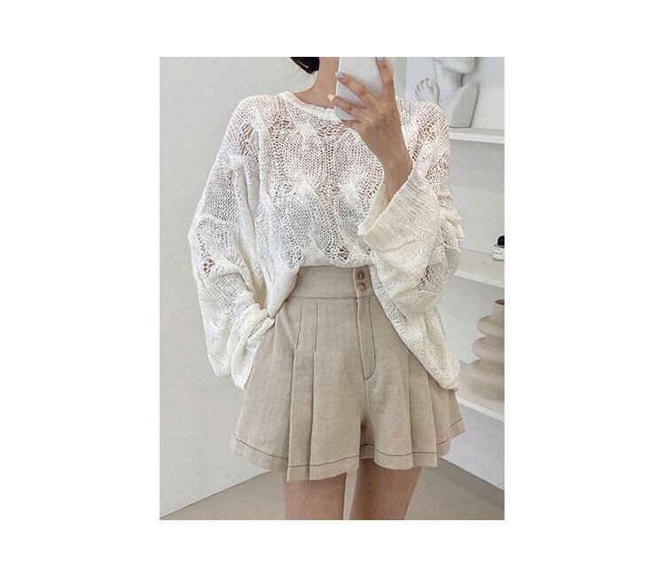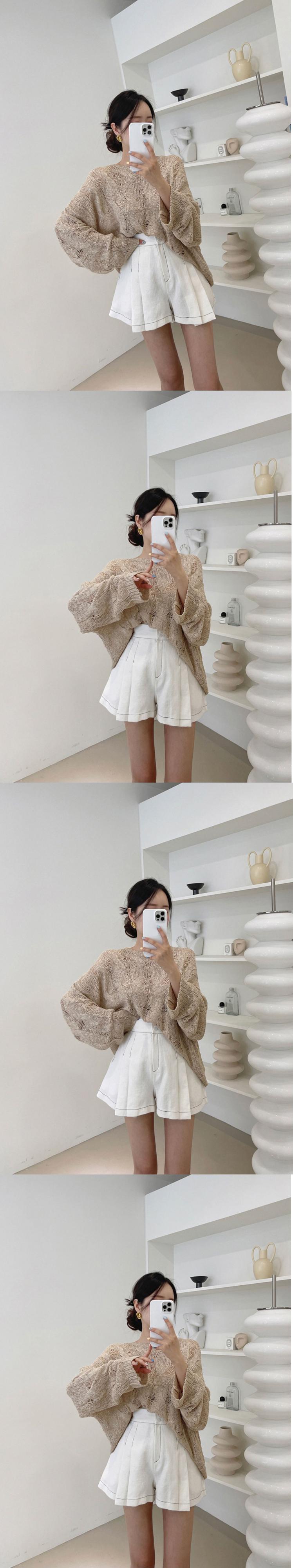 サマーラウンドネックセーター ハイウェストウェストボタンプリーツショーツ レディース ロング 夏物 ブルマー Oネック 7/20 mi4651899354680