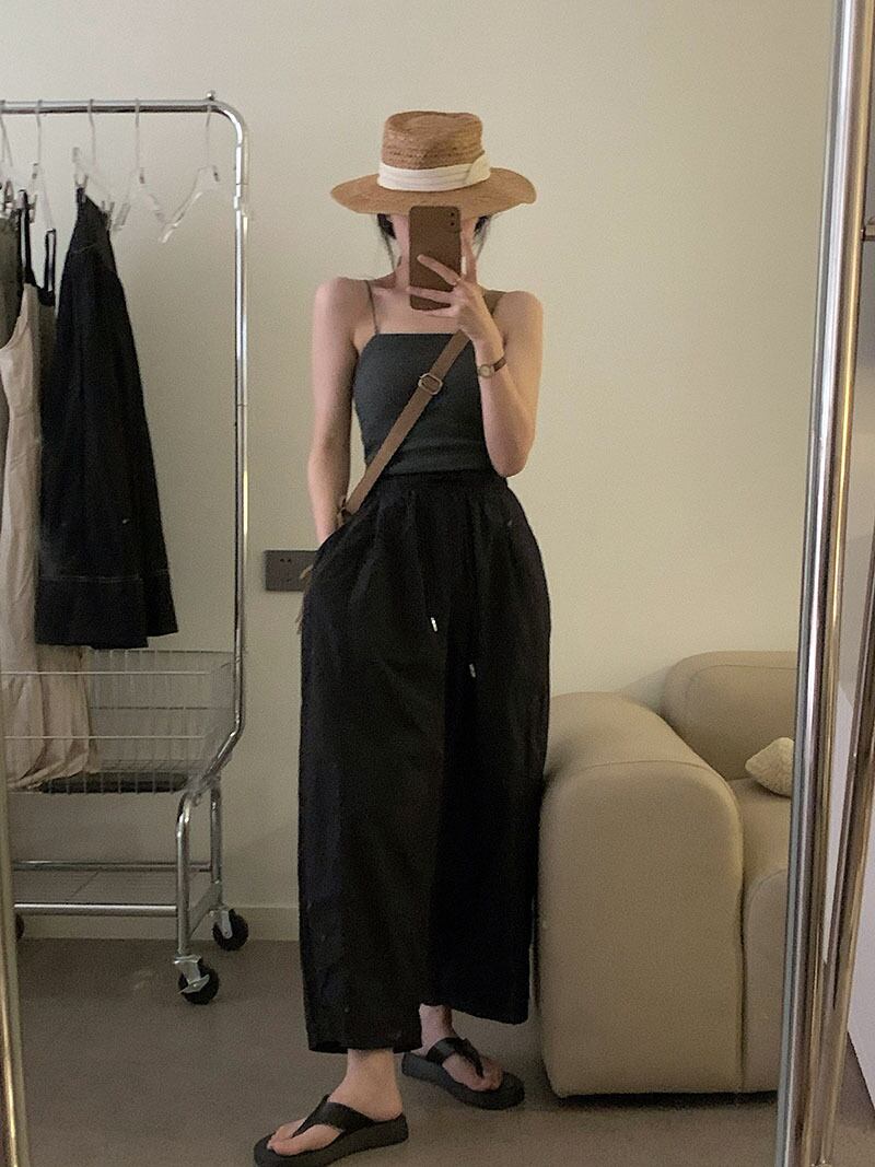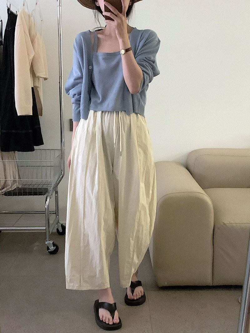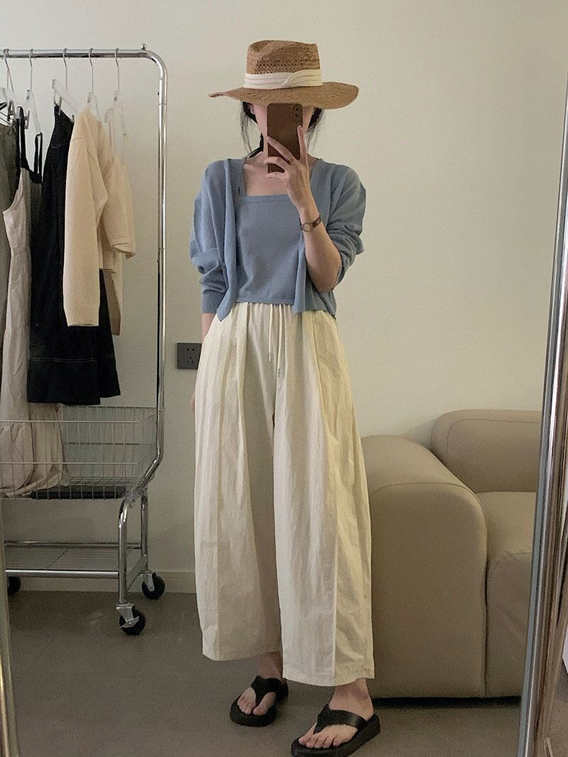 サマーカジュアルハイウェストスリムプリーツルーズパンツ レディース 夏物 7/20 mi4667682021480