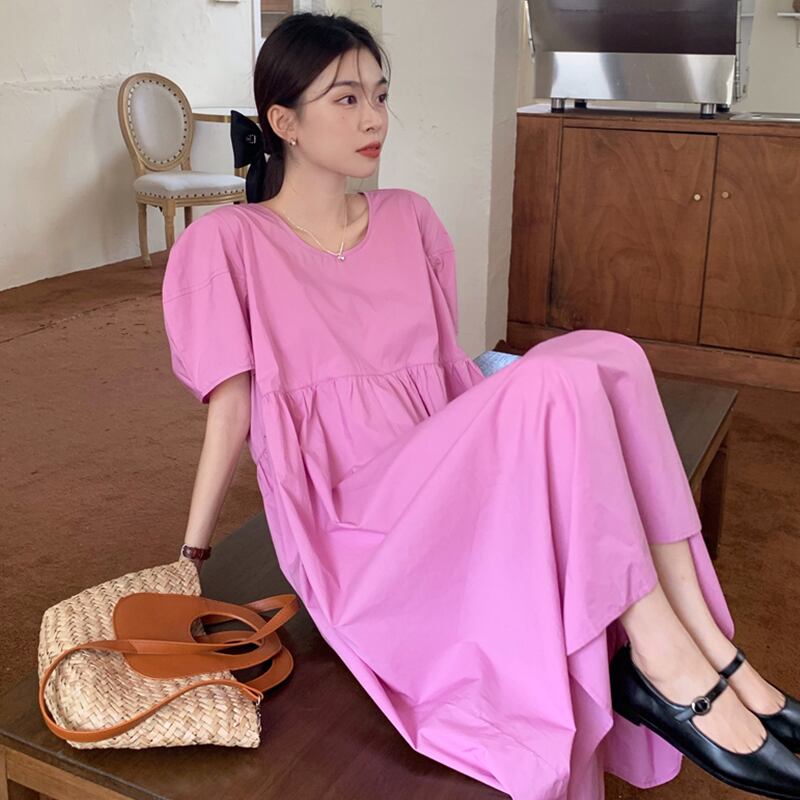 サマープリーツルーズカジュアルソリッド カラードレス レディース エレガント 夏物 ソリッドカラー 7/20 mi4659108021353