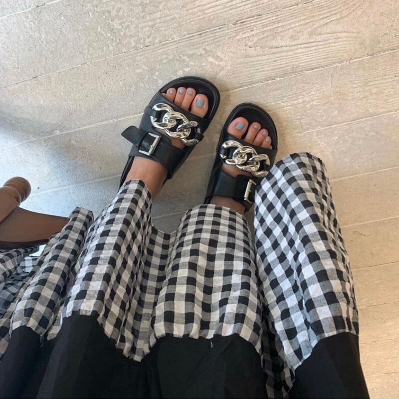 サマースタンダードラウンドネックカラー格子柄ルーズスリーブラッフルドレス レトロ 夏物 Oネック ステッチ 7/20 mi4629719394220