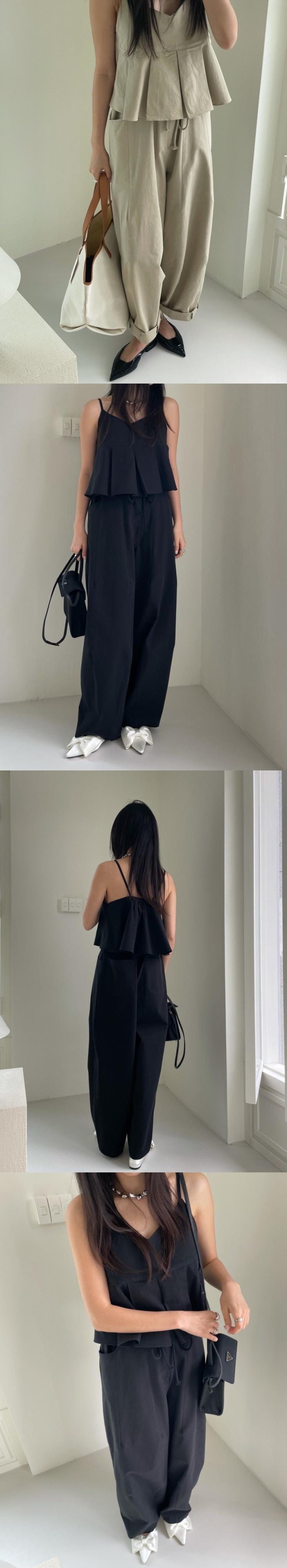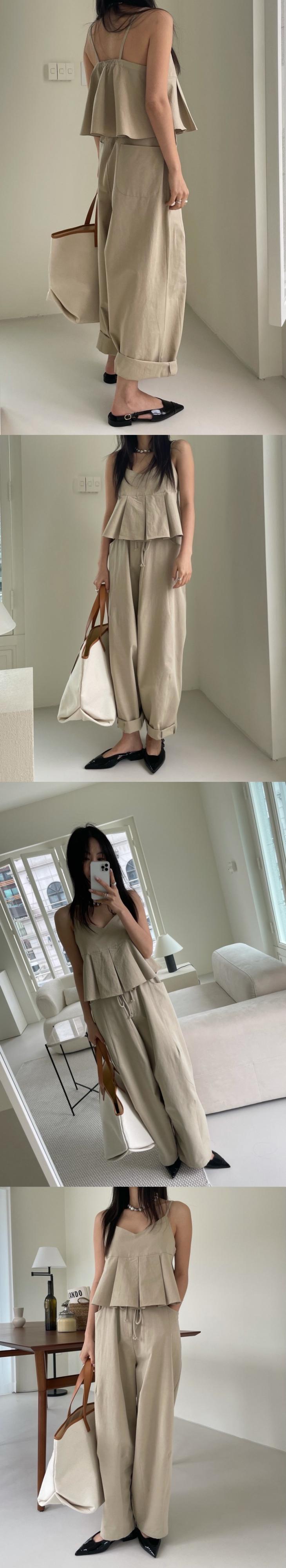 サマースタンダードVネックノースリーブプリーツハイウェストウェストカジュアルパンツ レディース レトロ 夏物 7/20 mi4686628697237