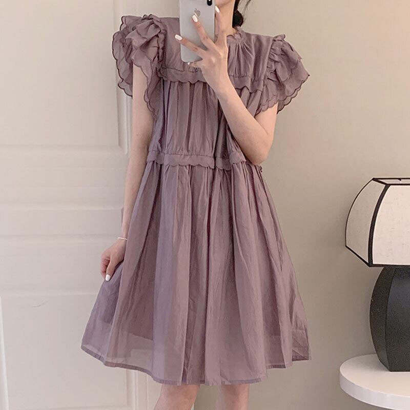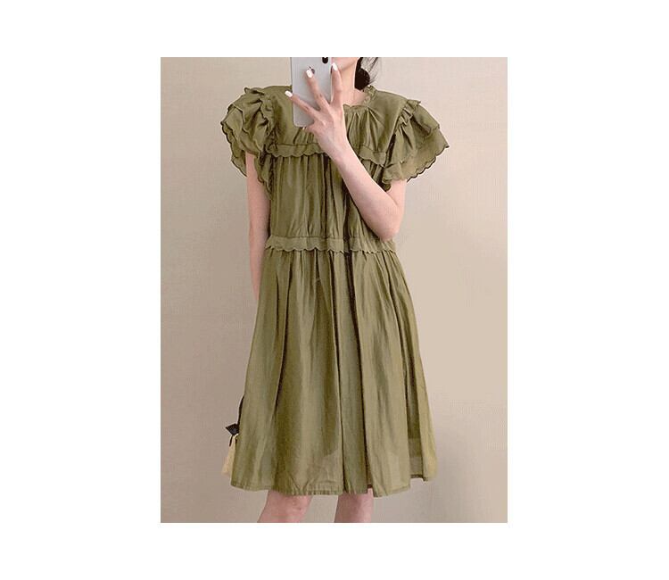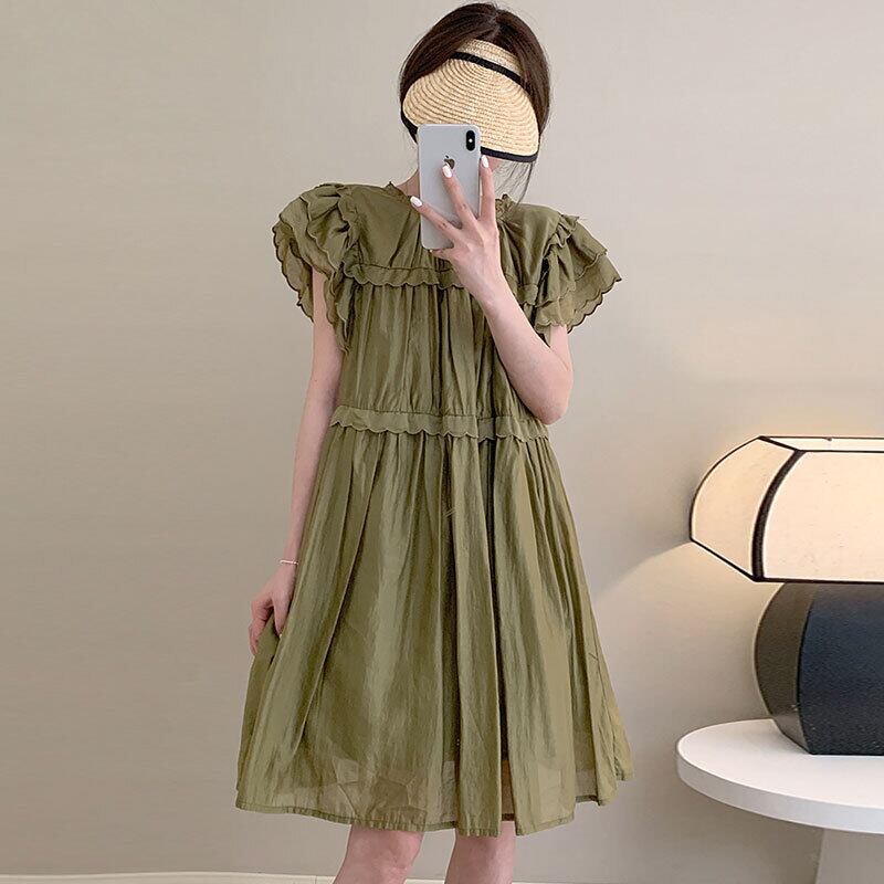 サマーラウンドネックルーズサイドドレス レッド 夏物 Oネック ステッチ 7/20 mi4694785024778