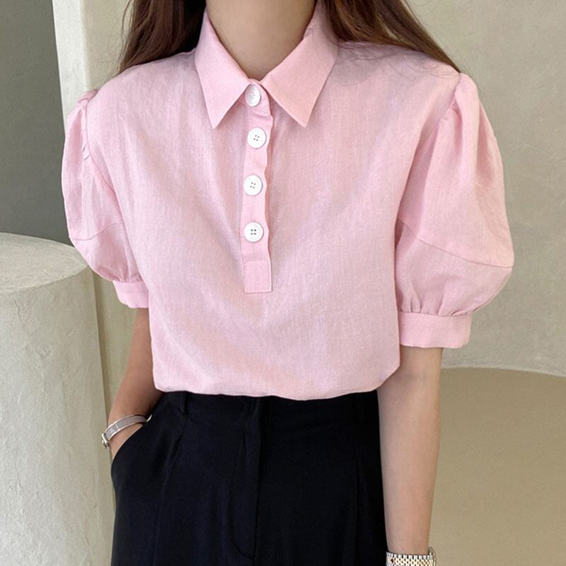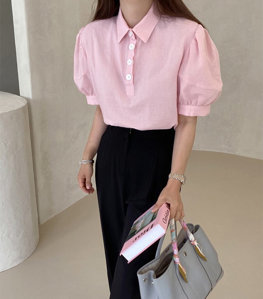 サマーカラールーズプリーツスリーブシャツ レディース 大人ガーリー スウィート キュート カジュアル 夏物 7/20 mi4627961776753