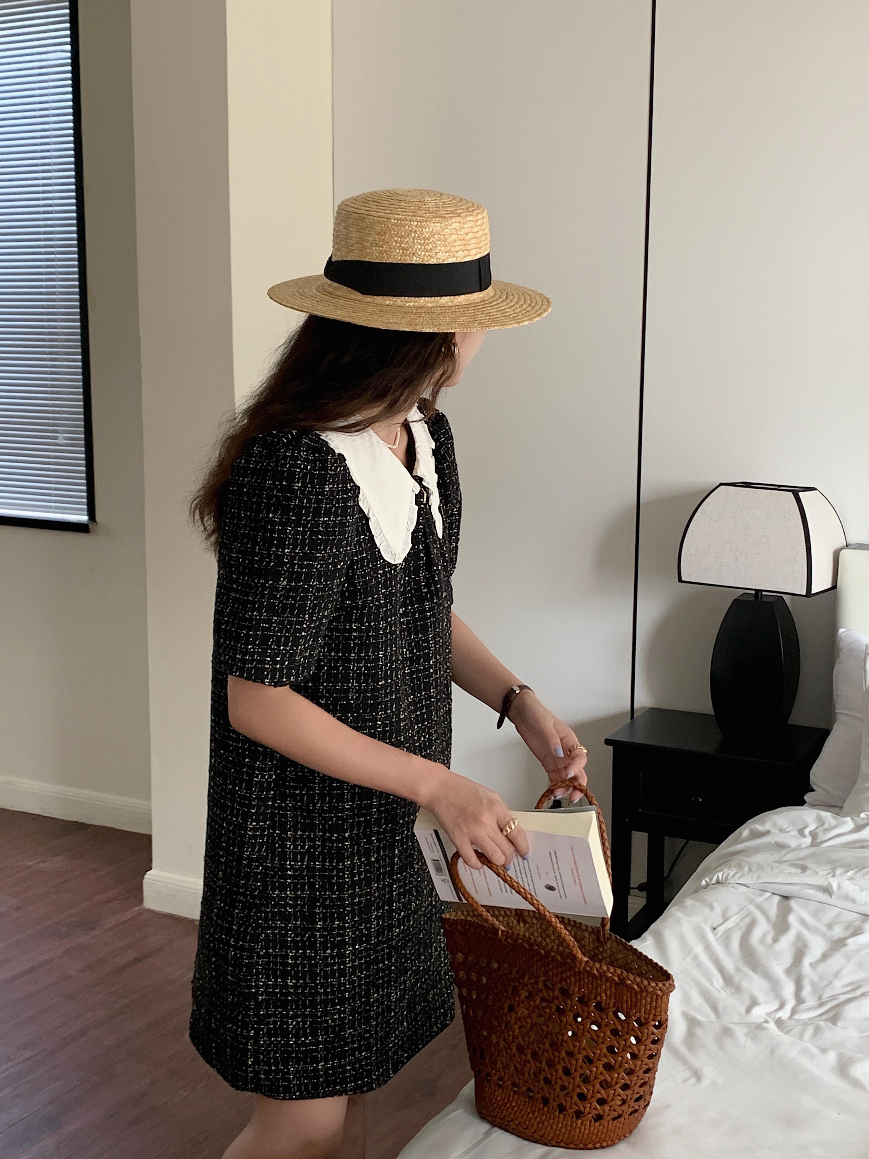 サマーカラーパールボタン格子柄ドレス スカート 夏物 真珠 7/20 mi4678921995169