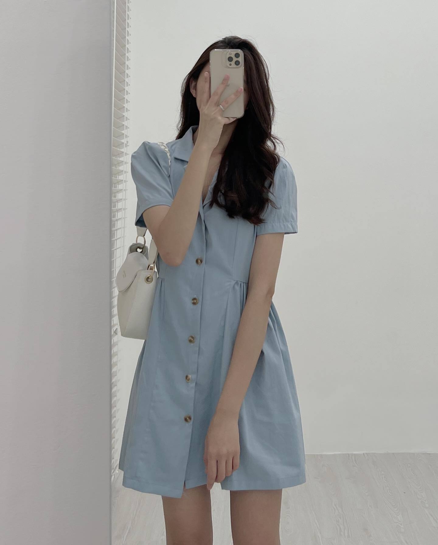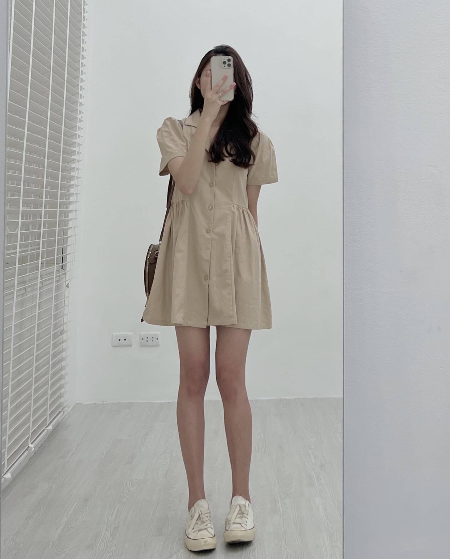 サマースタンダードカラーウェスト薄手ショートAラインドレス スカート レディース レトロ 夏物 7/20 mi4698061042230