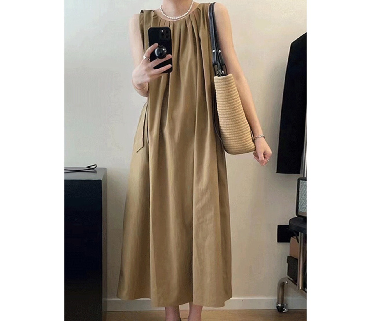 スタンダードノースリーブドレス サマーバックレスルーズロングスカート レトロ 夏物 7/20 mi464981786383