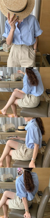ブルーホワイトポケットルーズカジュアルシャツ トップス レディース 7/20 mi4646964179702
