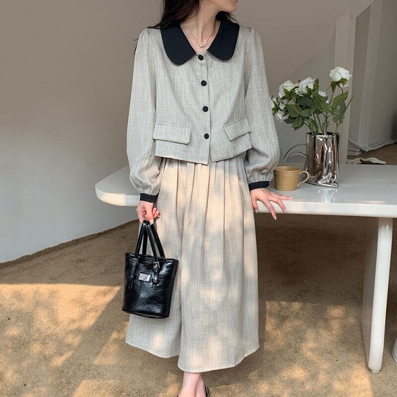 オータムカラーロングシャツ ハイウェストウェストスカート コットン 秋物 7/20 mi4668265336836