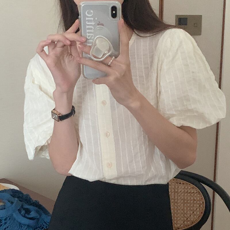スリーブストライプシャツ サマールーズカジュアル薄手トップス 夏物 7/20 mi4688340071511