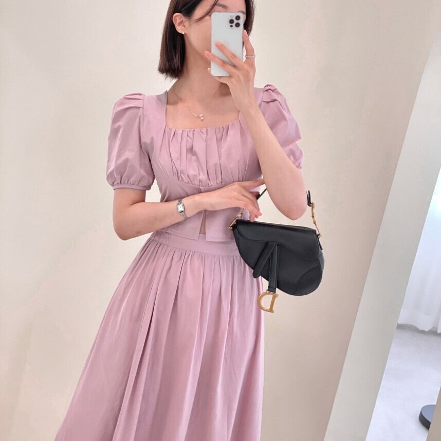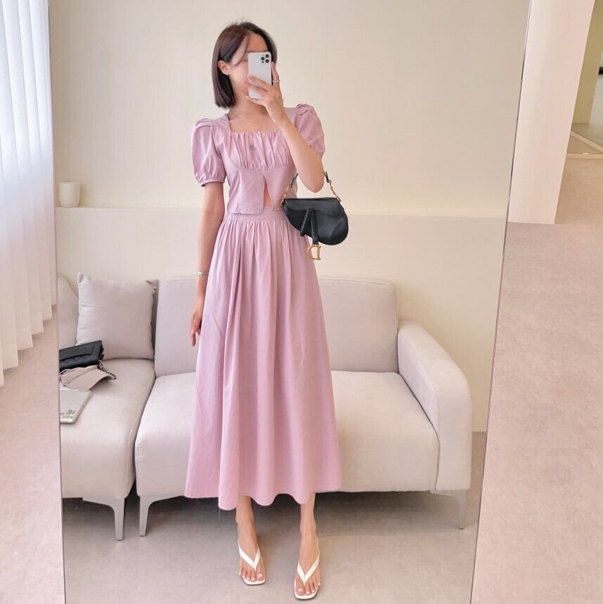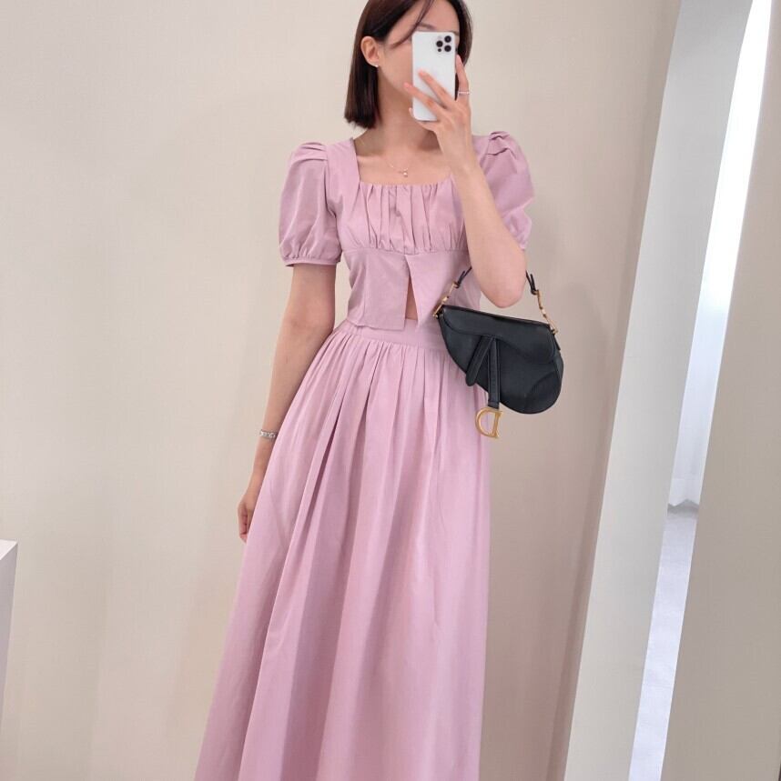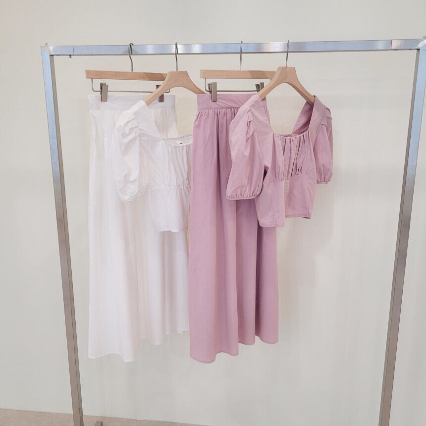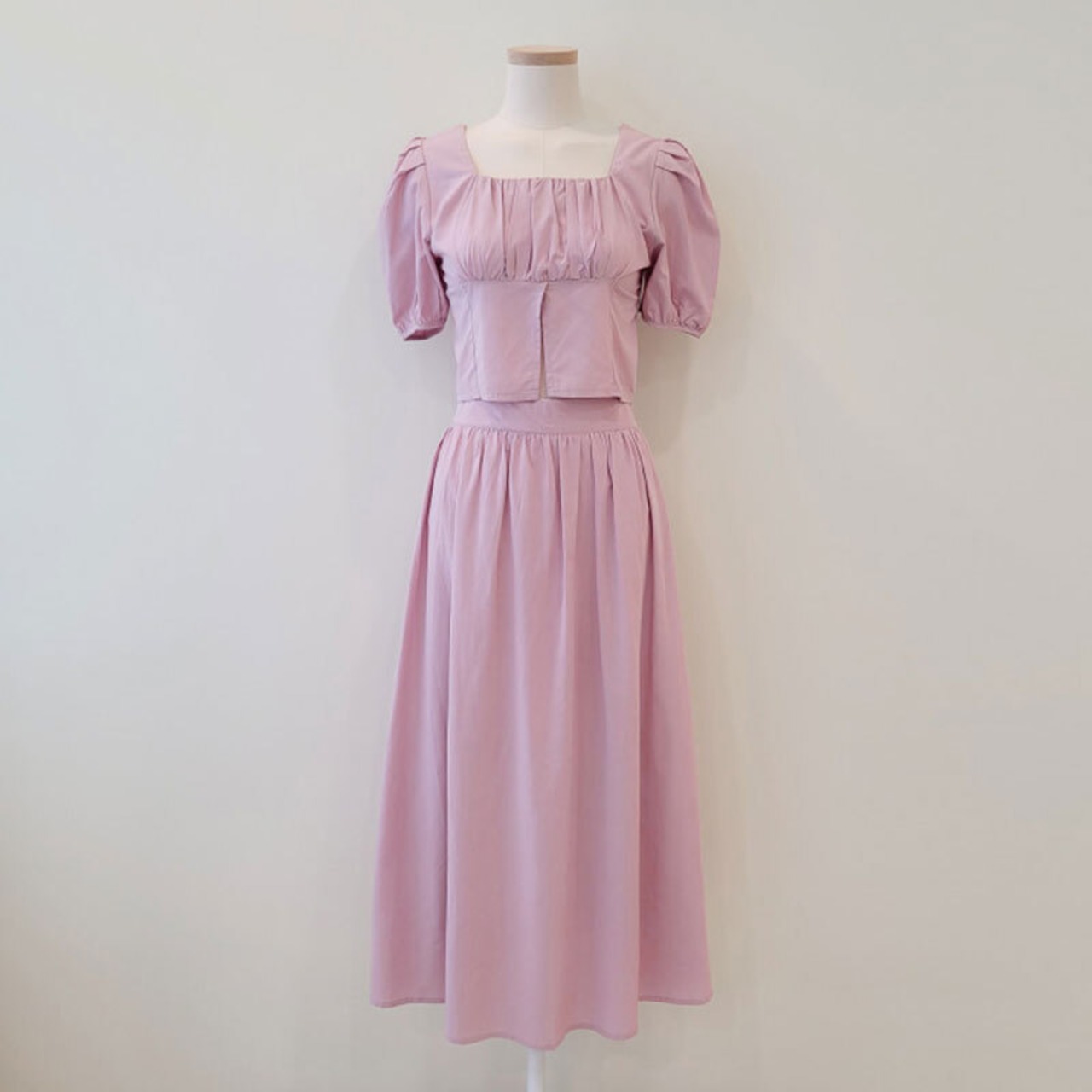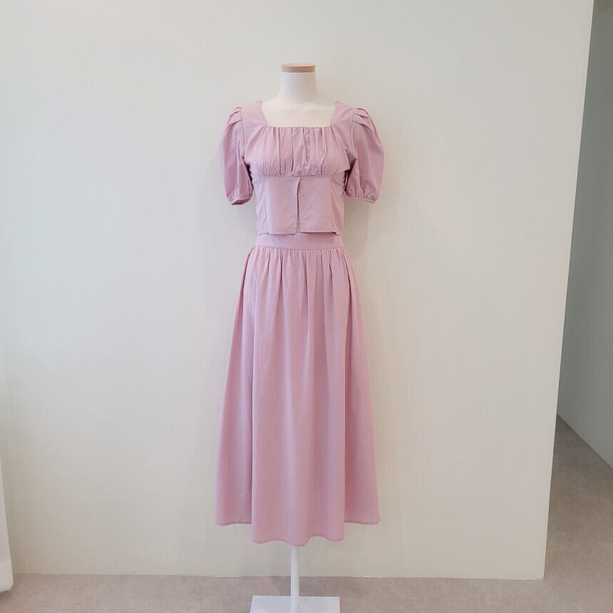 プリーツスリーブスリットシャツ サマーハイウェストウェストAラインスカート 夏物 パープル 7/20 mi4697994989926