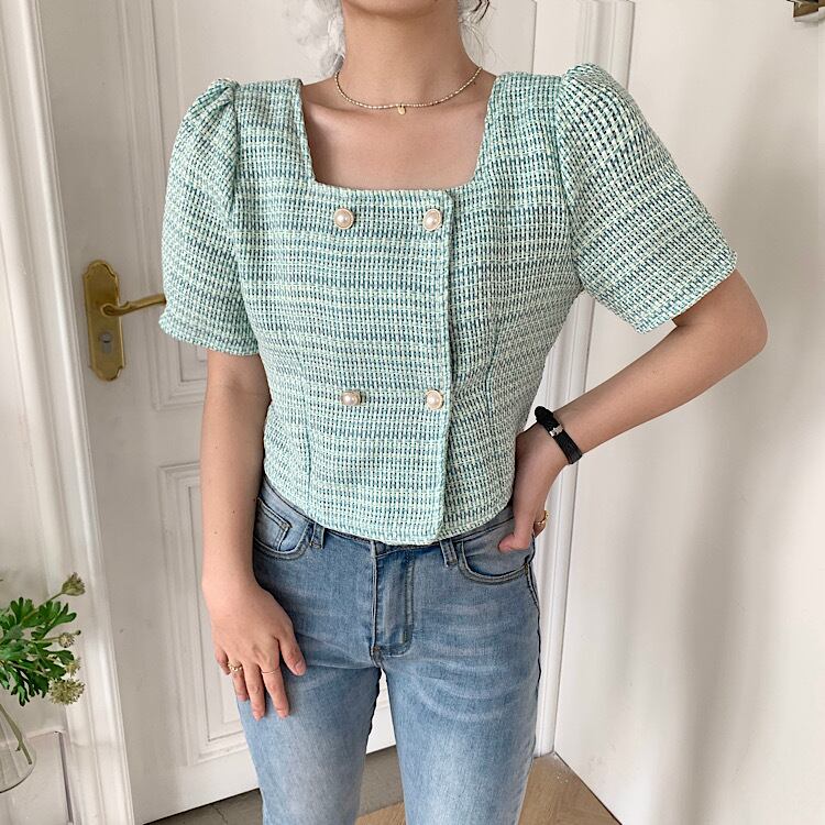 サマーカラーパールダブルブレストルーズスリーブツィードショートコート レッド 夏物 真珠 スクウェア 7/20 mi4659445108282
