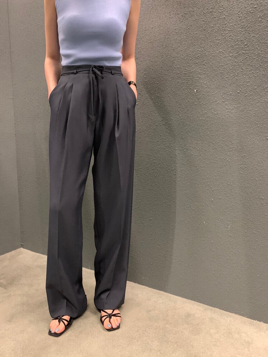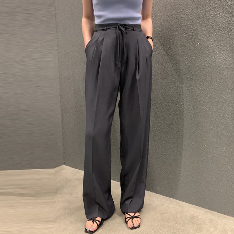 スタンダードハイウェスト薄手プリーツパンツ レディース レトロ レース レースアップ 7/20 mi4667898278494