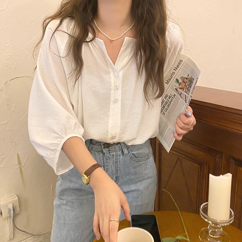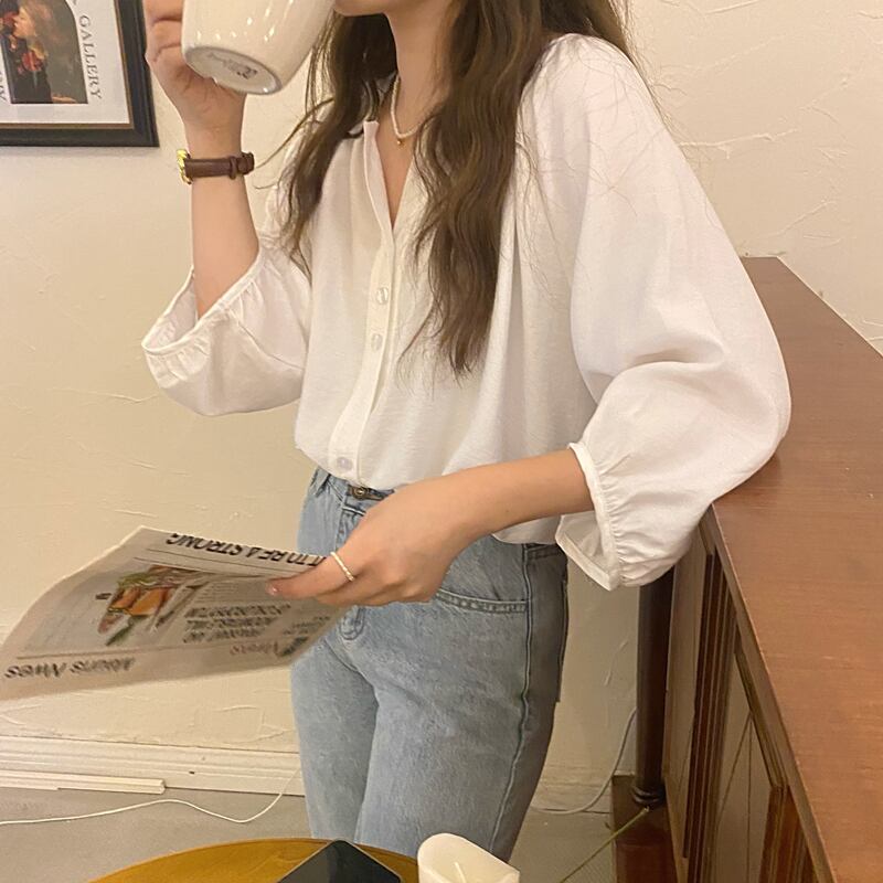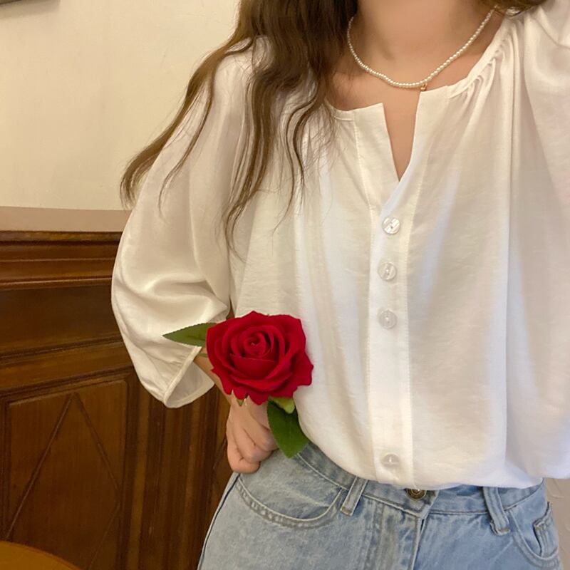 オータムラウンドネックルーズソリッド カラースリーブシャツ トップス レディース 秋物 Oネック ソリッドカラー 7/20 mi4675536482138