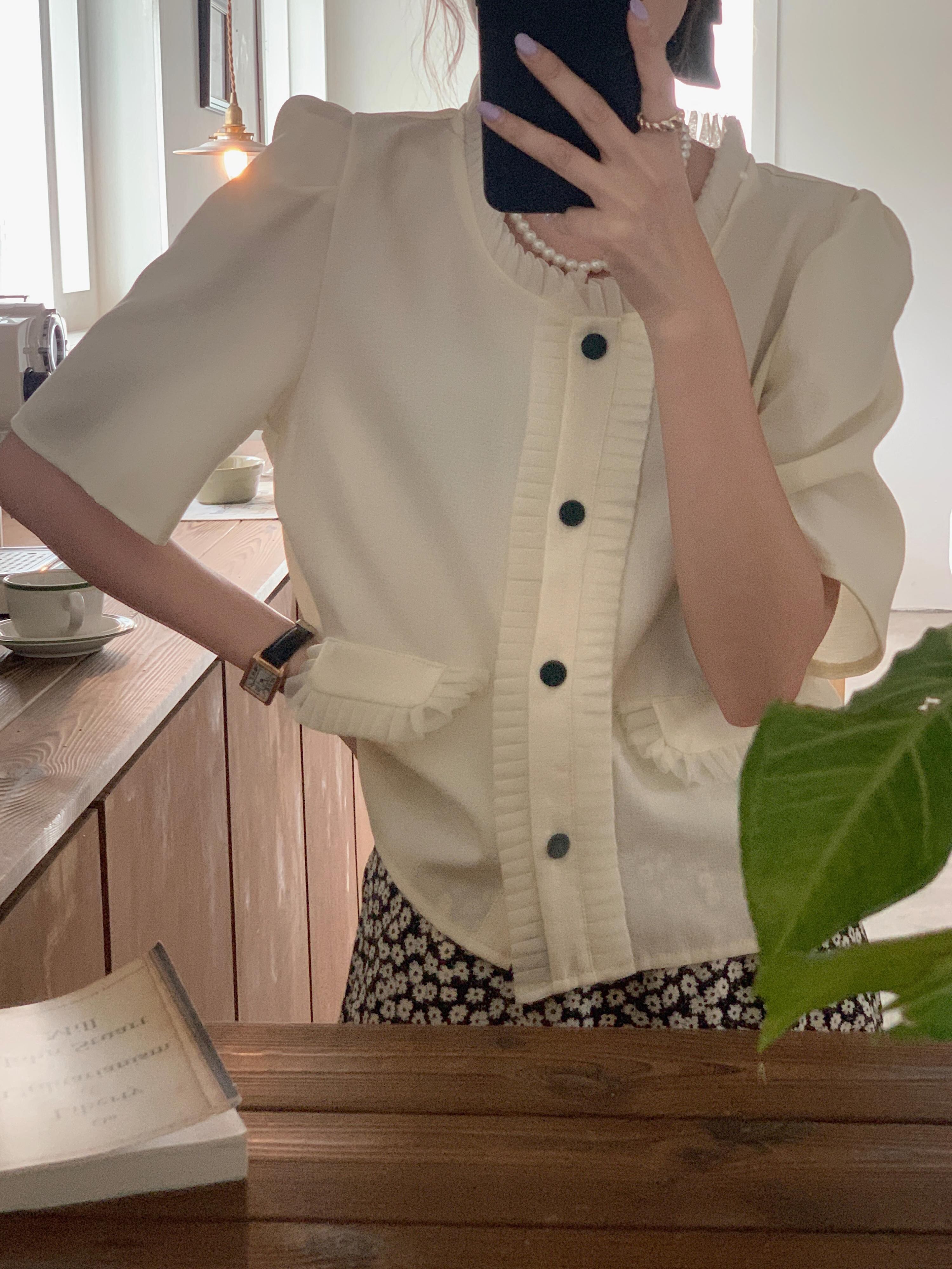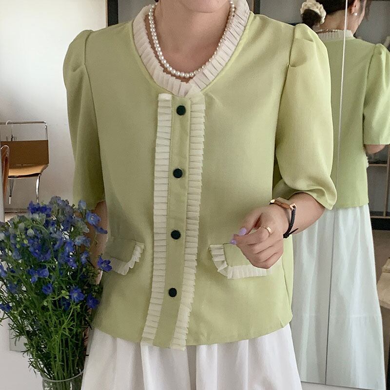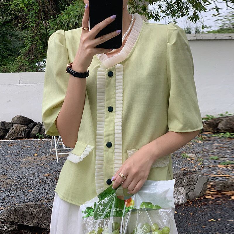 サマーカラースリーブシャツ レディース 夏物 ステッチ 7/20 mi4682742451458