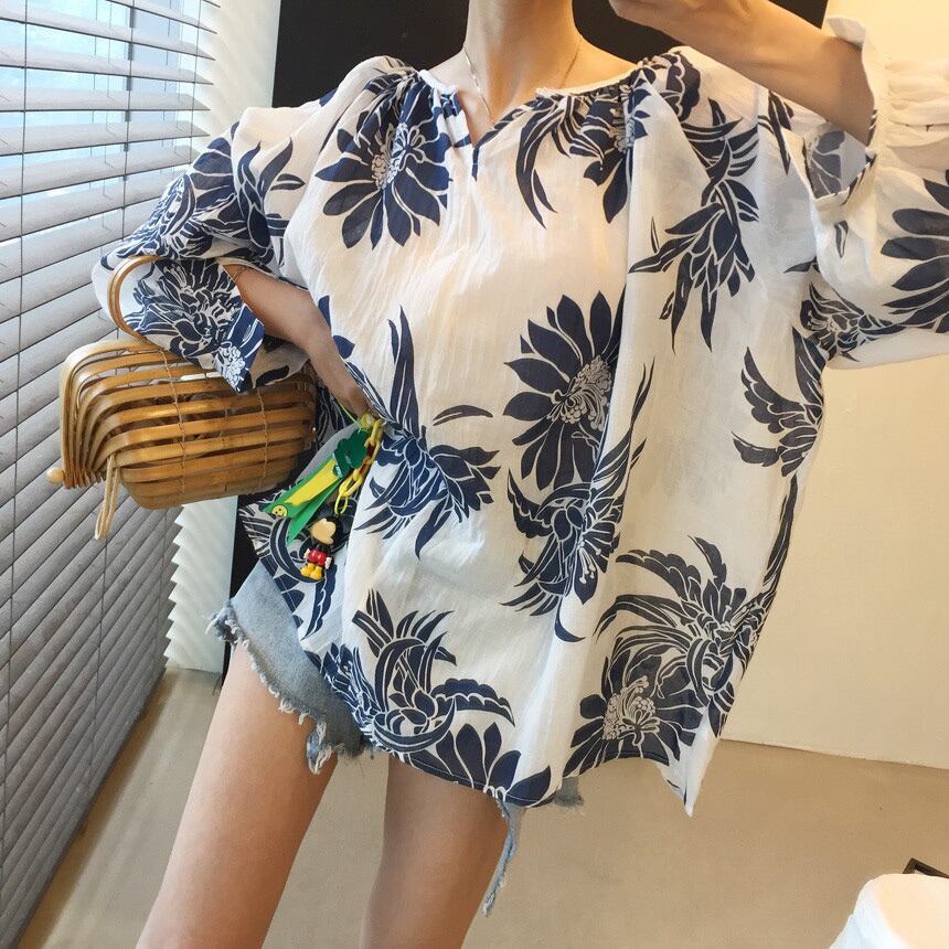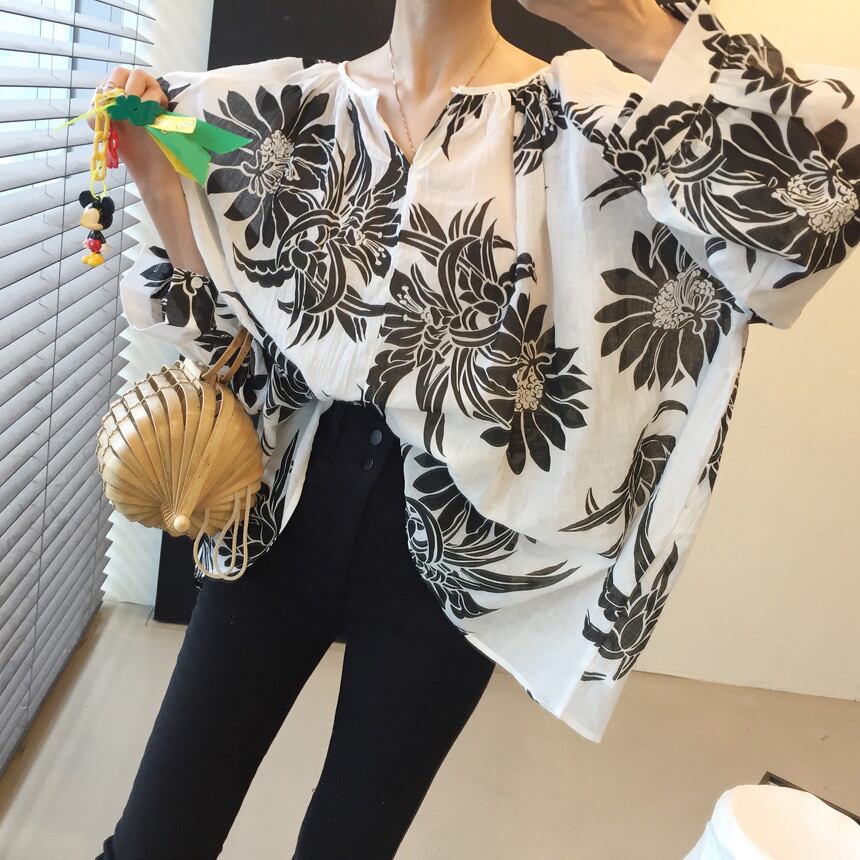 スタンダードFlowerデザイン プリント柄スリーブシャツ オータムルーズカジュアル薄手トップス ランタンスリーブ レトロ 秋物 フラワーデザイン 7/20 mi4697661189659