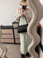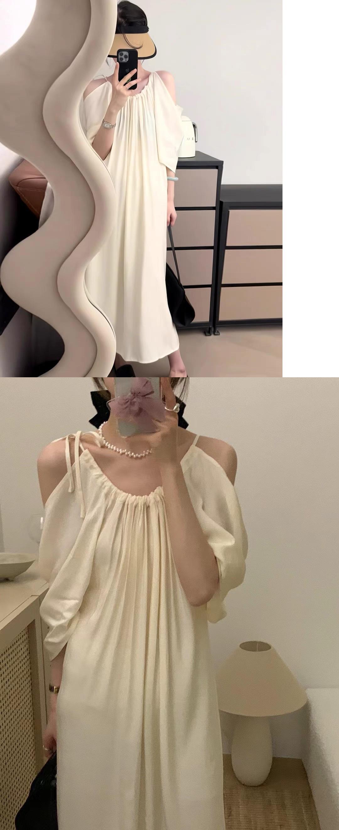 サマーラウンドネックプリーツドレス ロングスカート 夏物 Oネック 7/20 mi461050970019